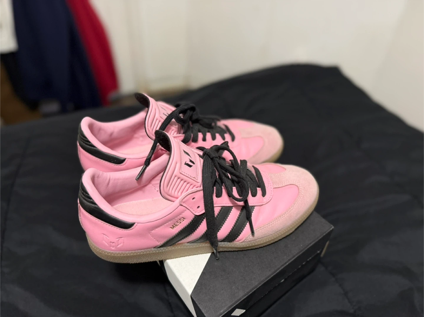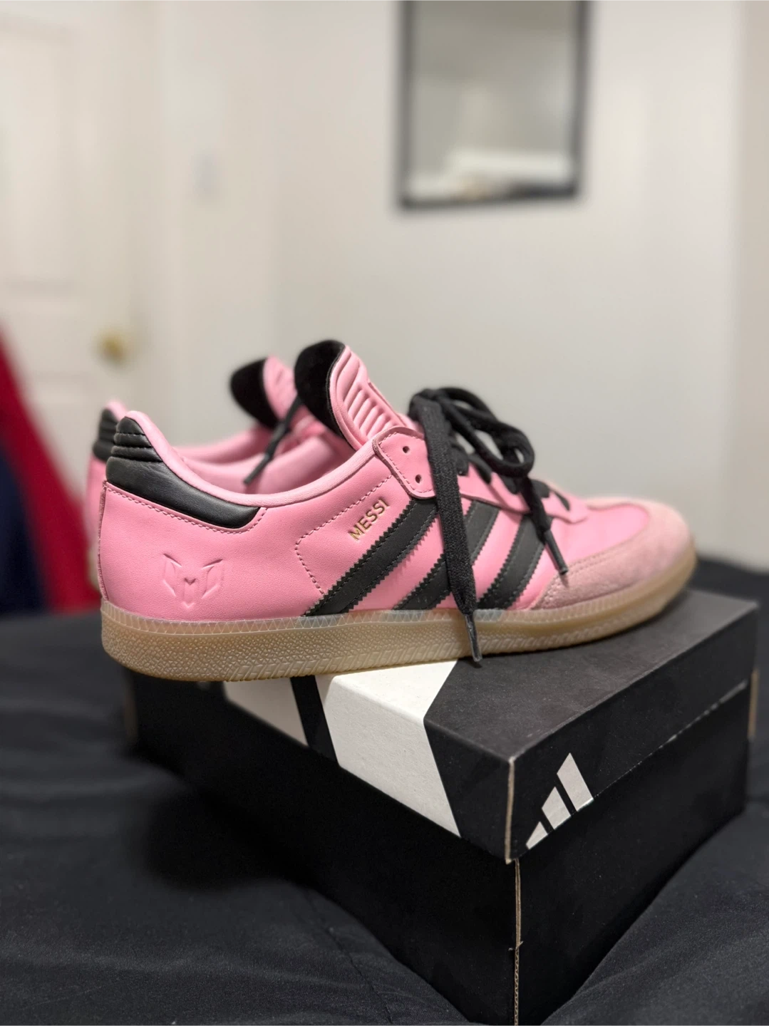Selling a pair of Adidas Samba Messi shoes in pink! These are in great condition. They come with the original box too. Size 10.5