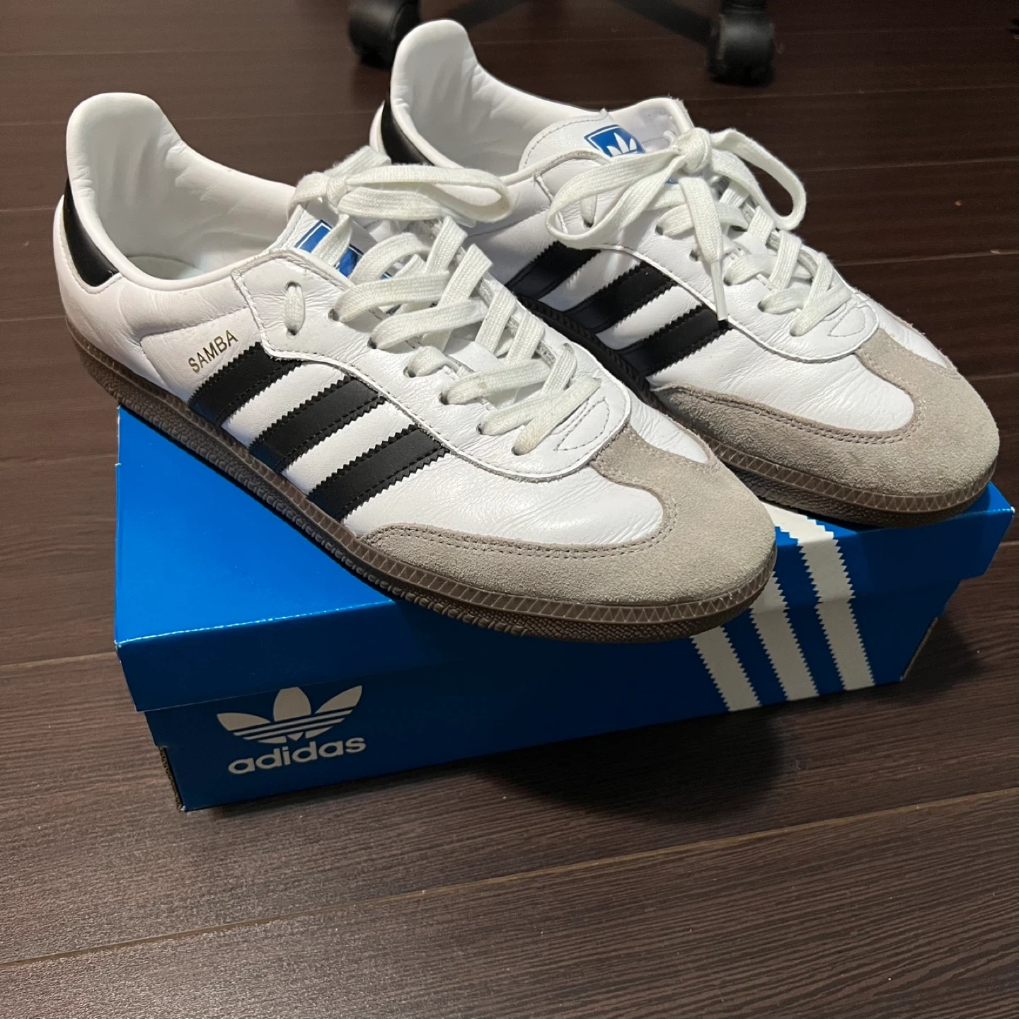 181Selling a pair of Adidas Samba OG sneakers in US size 9.5! They come with the original box. Worn them two times. They don't quite fit me, so my feet starts to hurt. *NO TRADE; NO SHIPPING; ONLY CASH will be accepted*