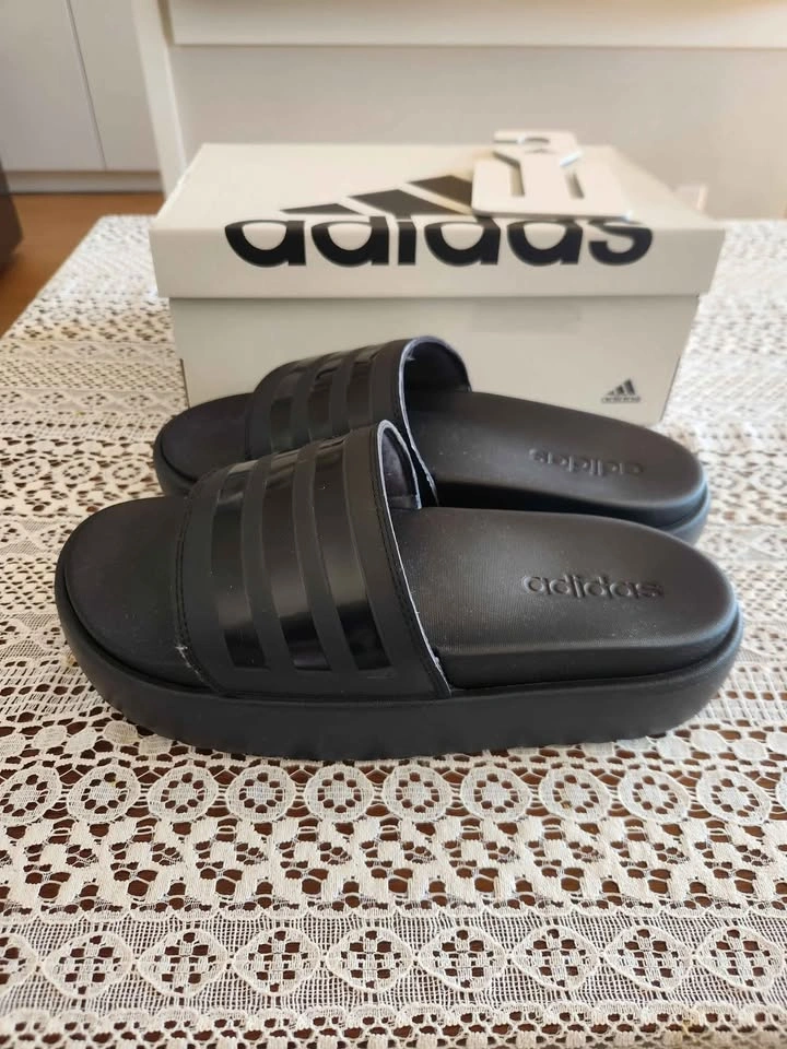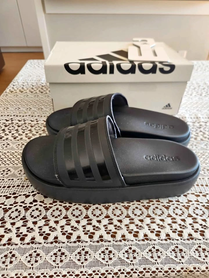 Adidas Adilette Platform slides in US size 8. These are in like new condition and come with the original box. Perfect for wearing in summer, or around the house.