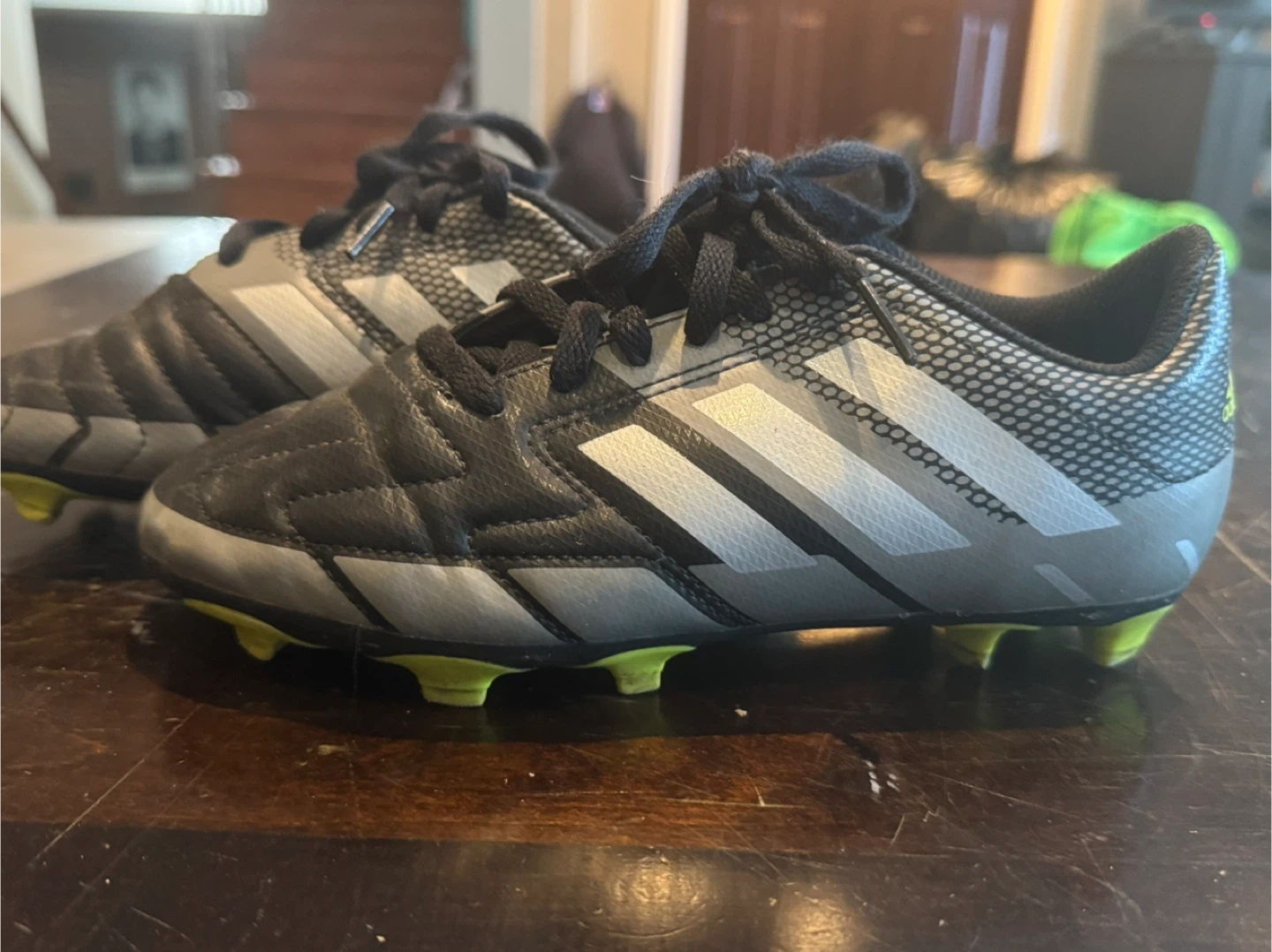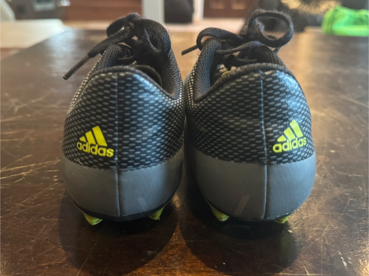 Selling a pair of Adidas soccer cleats in grey and black. Size 3. They are in good condition and ready for the field! Perfect for young athletes looking for reliable footwear.