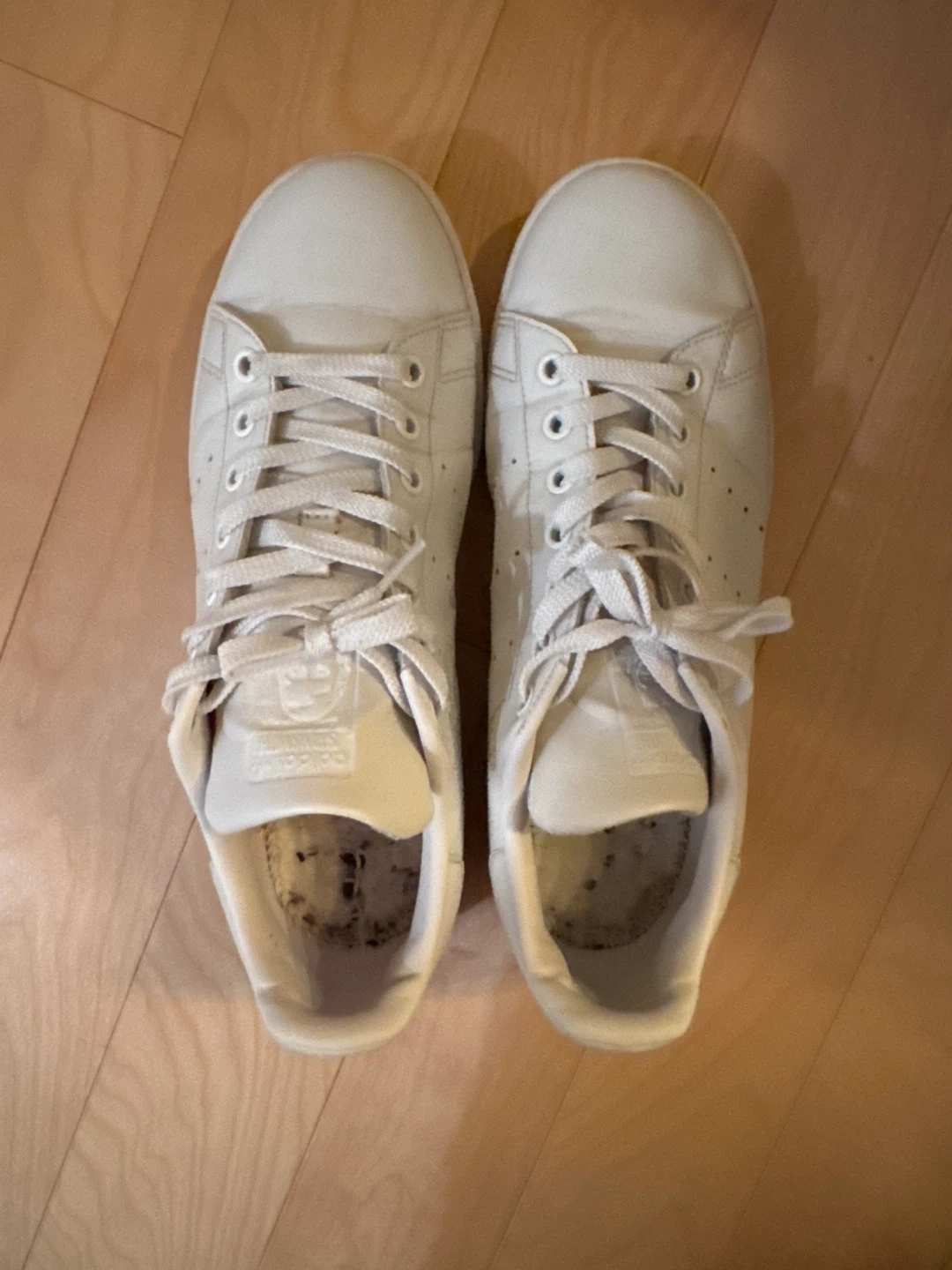 Selling a pair of Adidas Stan Smith sneakers. They show some signs of wear, as you can see in the pictures. Great for casual wear!