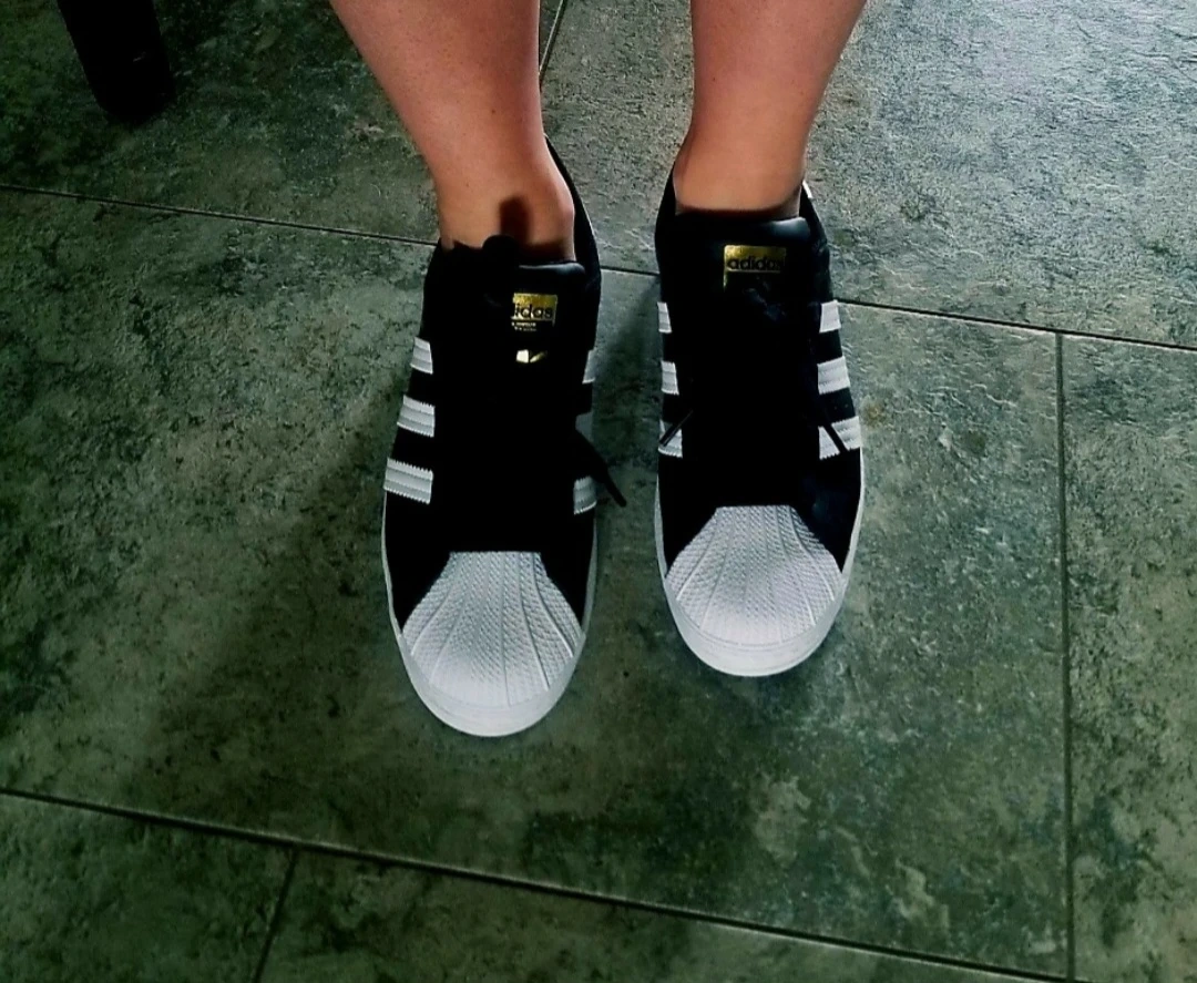 10Classic Adidas Superstar sneakers in black and white! These are a timeless style and go with everything. They're in great shape and ready for a new home. Perfect for everyday wear! Womens Brand New! Only when once tor 3 hours!