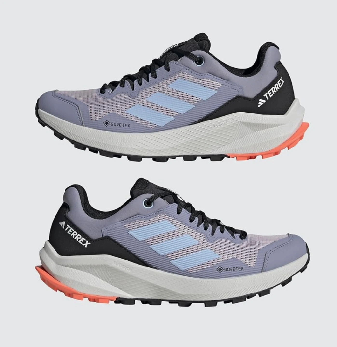 10Get ready to hit the trails with these Adidas Terrex trail running shoes for women! Featuring a stylish lilac and light blue colourway, these shoes are designed for comfort and performance on any terrain. The GORE-TEX lining ensures your feet stay dry, while the Terrex branding adds a touch of sporty flair
