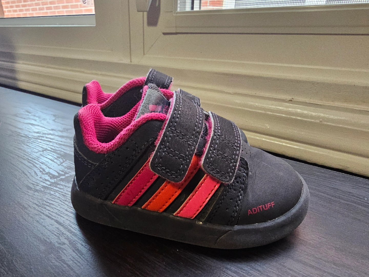These adorable Adidas toddler sneakers are in great condition and ready for a new home! The size is a toddler 5. Perfect for your little one's adventures!