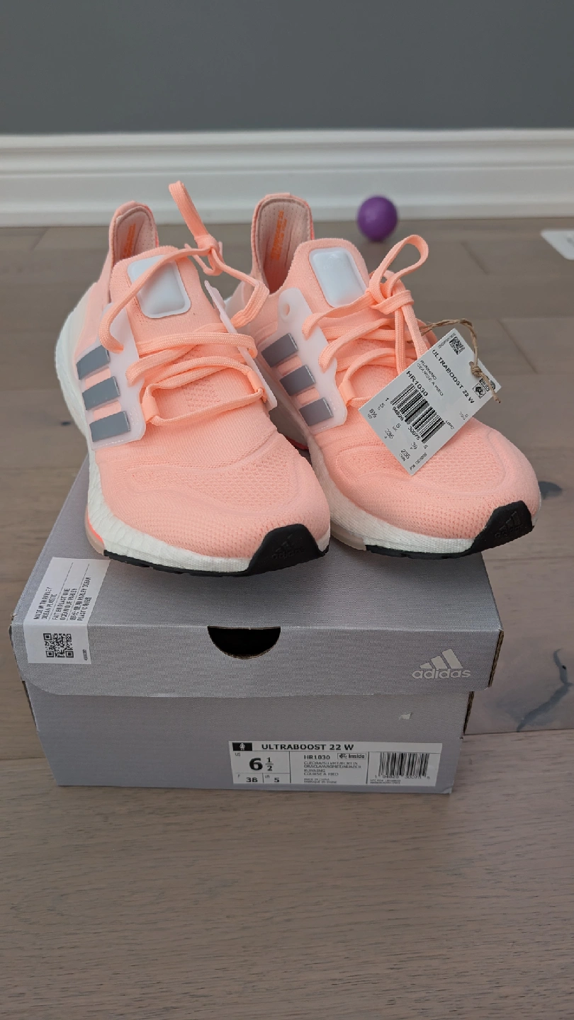 These are a brand new pair of Adidas Ultraboost 22 W running shoes! They are a women's size US 6.5 and come with the original box