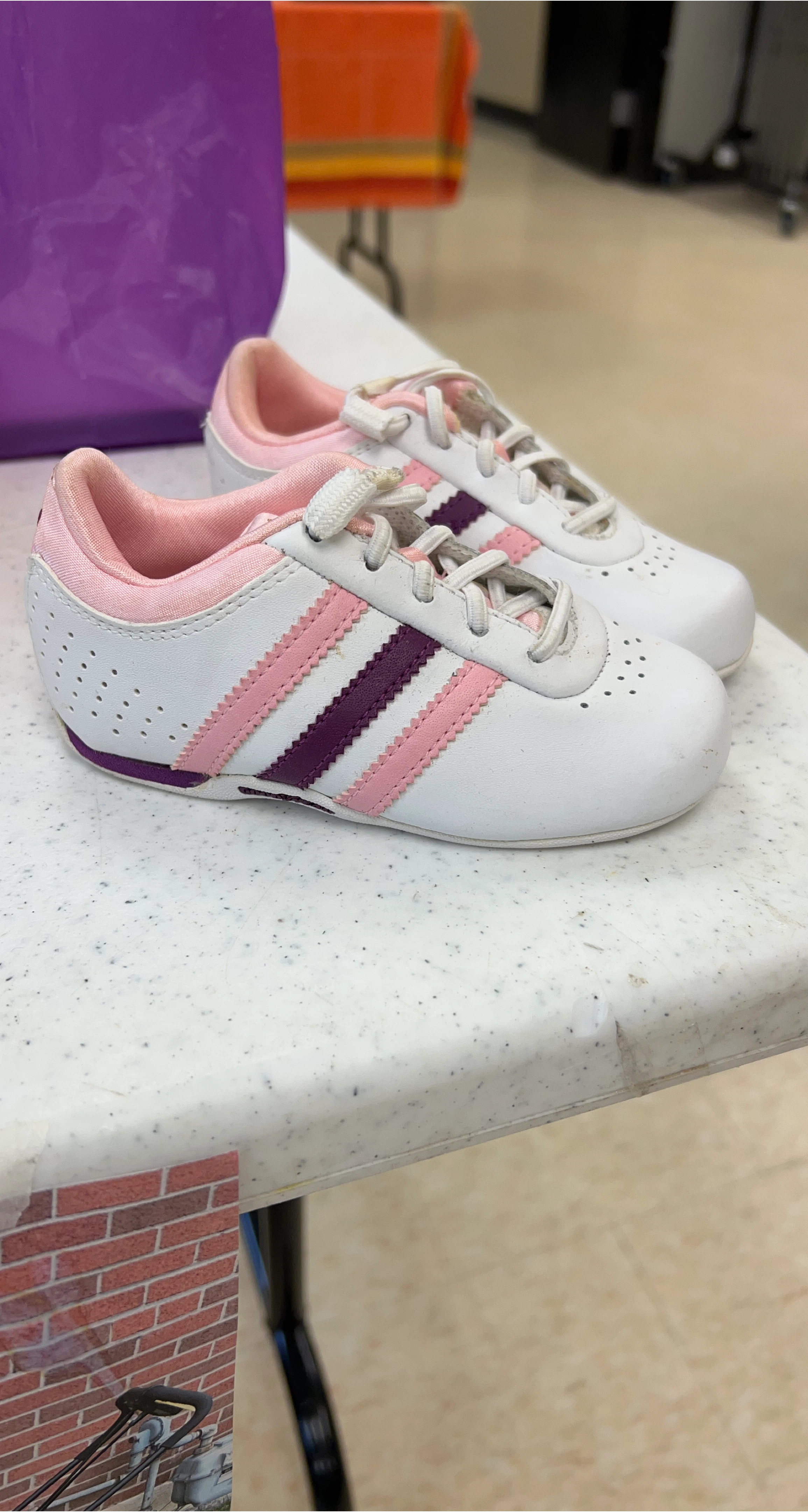 65Cute Adidas sneakers with pink and purple stripes! They're in great condition and ready for a new home