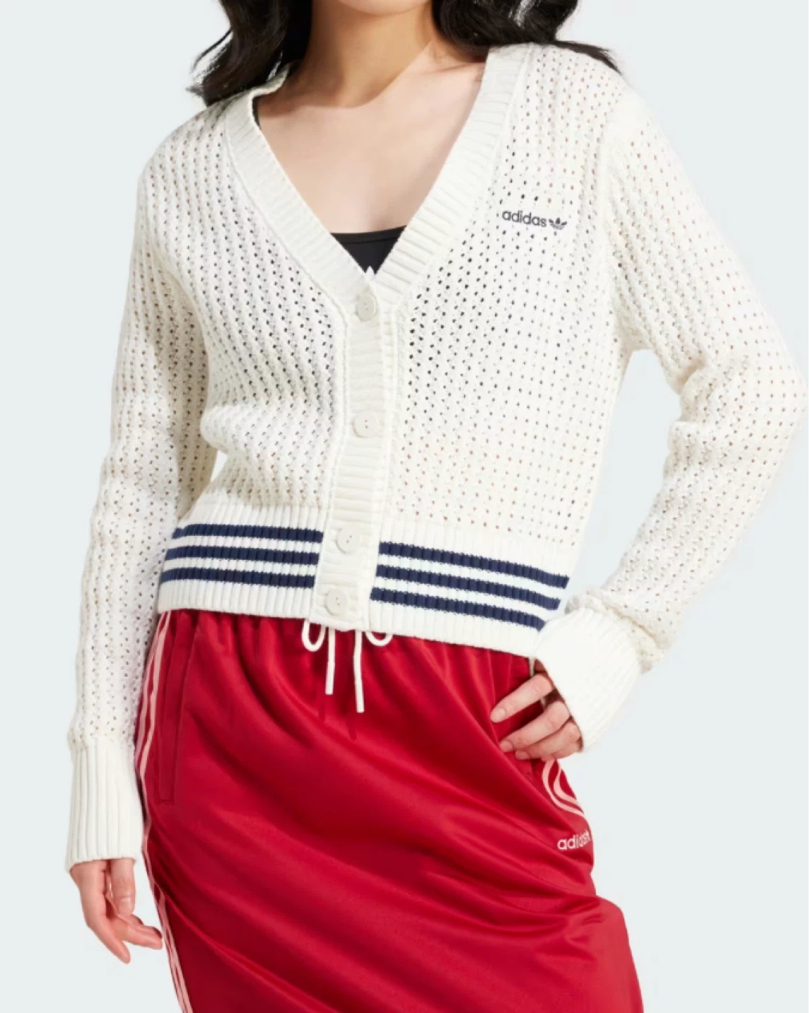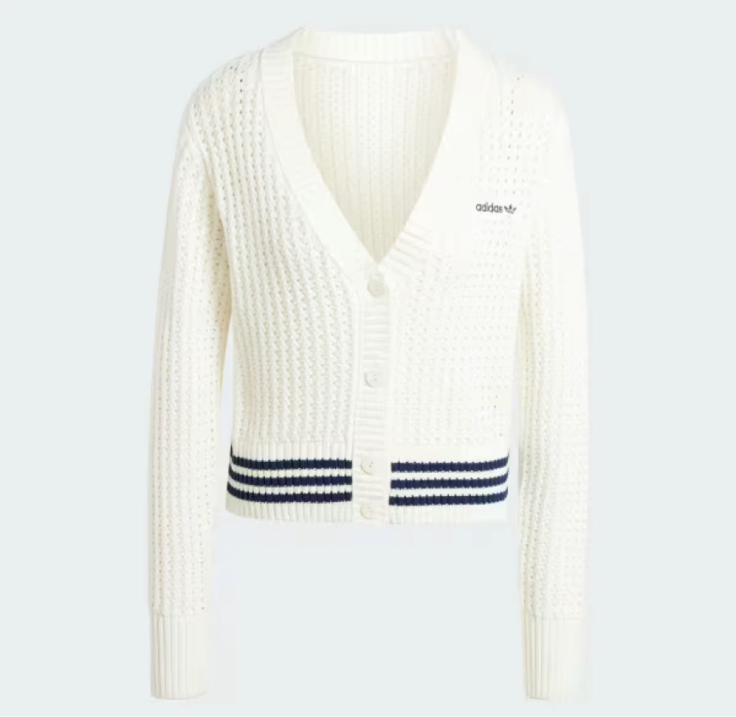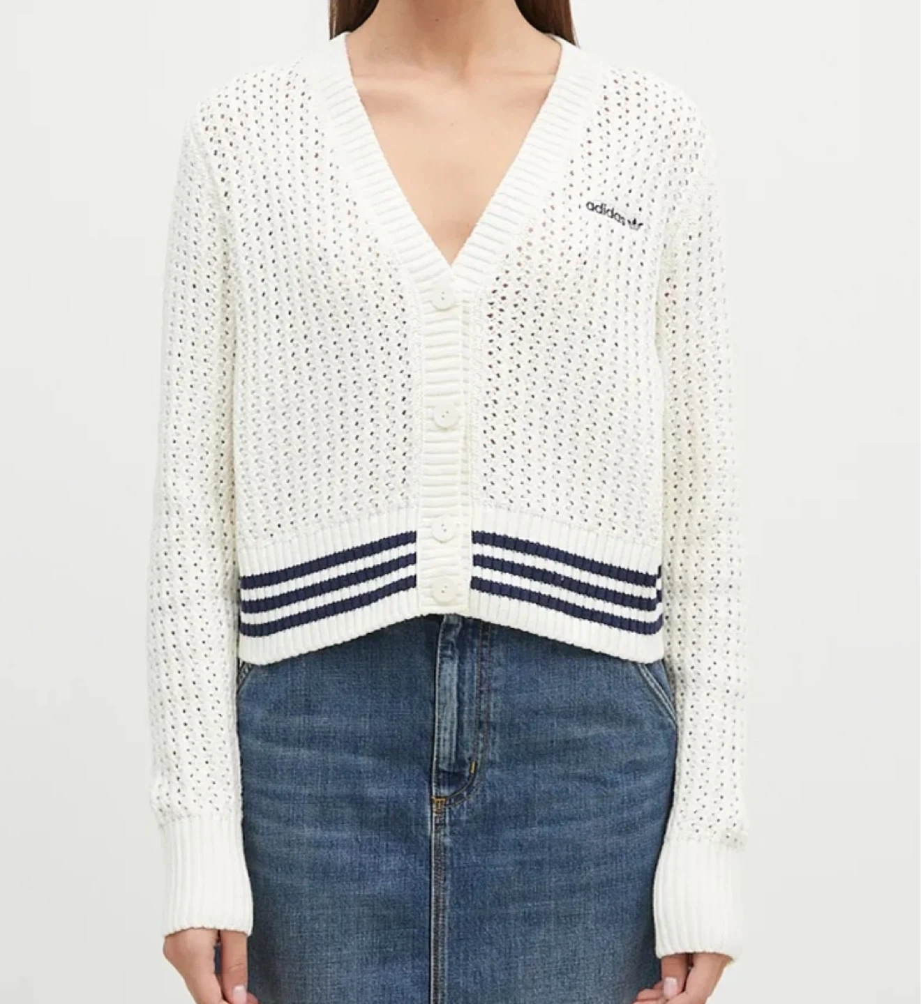 84This is an Adidas women's cropped cardigan. KNIT CARDIGAN $80 Colour: Off White Size: 2XST