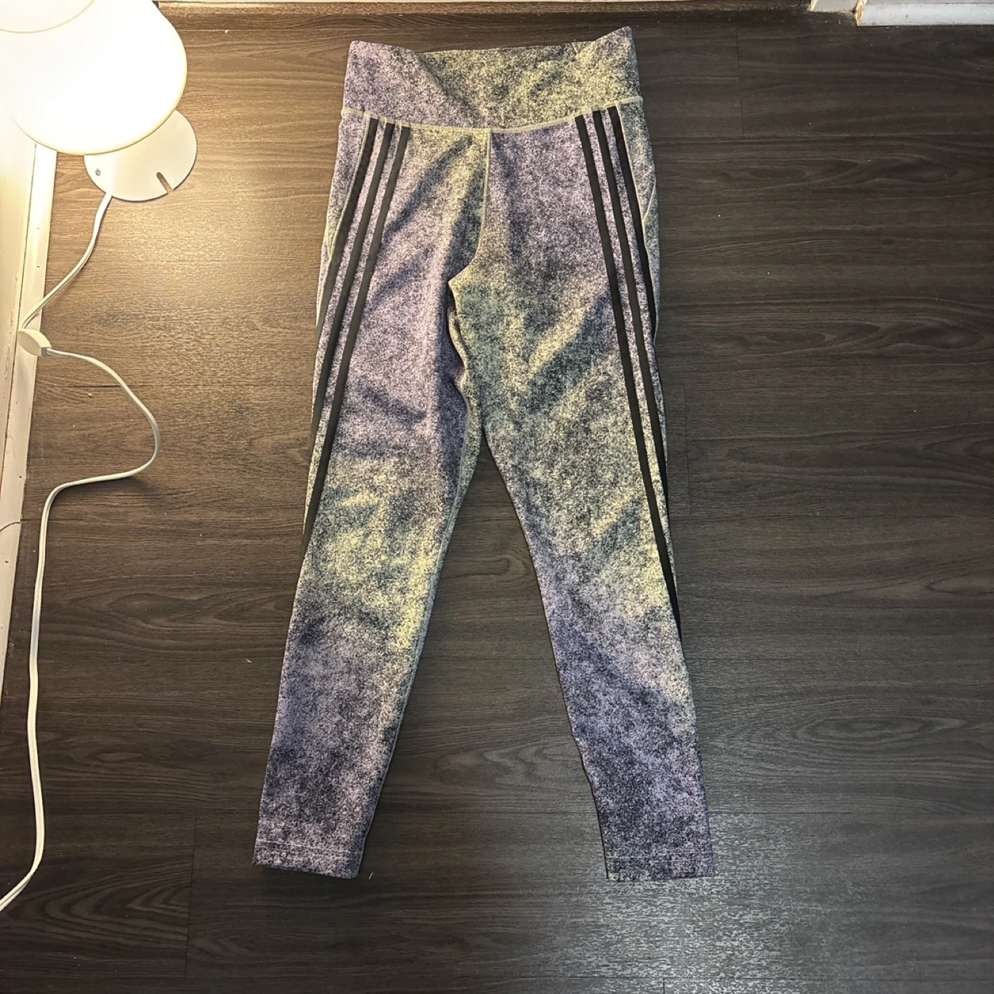 Adidas women's leggings with the classic three-stripe design. These leggings are perfect for workouts or just lounging around. They're in great condition and ready for a new home!