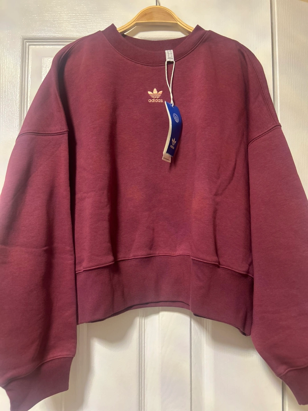 10Brand new with tags. Maroon colour. Relaxed fit. Small Adidas logo on chest. Soft material. Perfect for casual wear.
