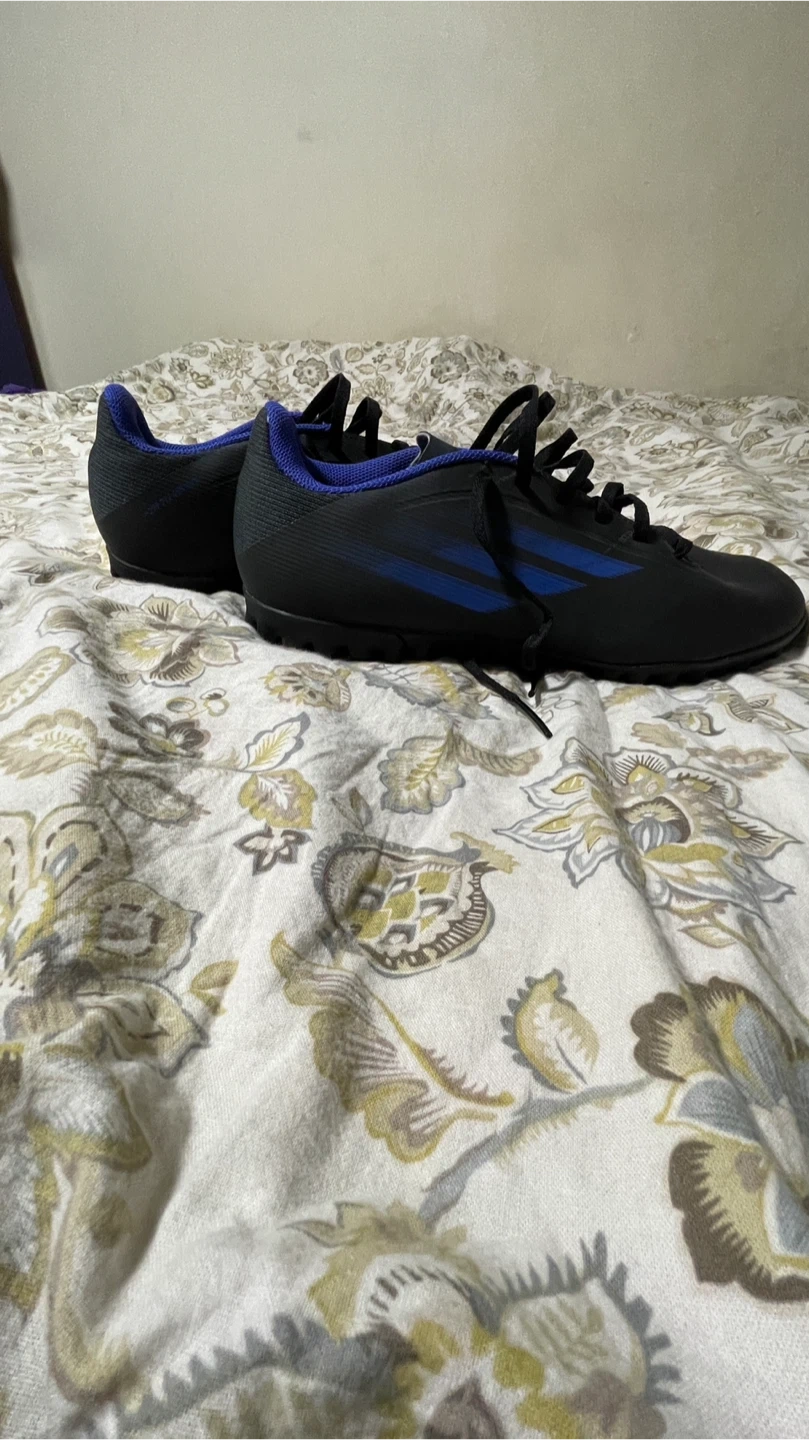 43Selling a pair of Adidas X Speedportal.4 turf soccer shoes in size 9. They are black with blue accents and in good condition. Perfect for playing soccer on turf!