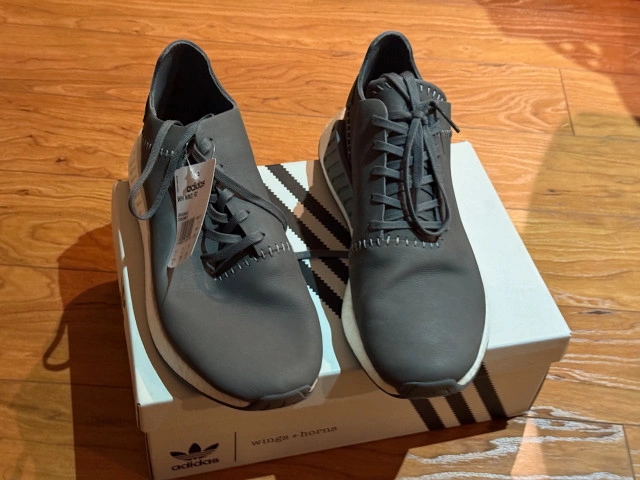 67Brand new with tags. This rare Adidas Originals x Wings + Horns collaboration elevates the NMD_R2 with handcrafted detailing and minimalist design. Featuring a premium leather upper with hand-stitched accents, Boost cushioning for exceptional comfort, and a sleek tonal “Ash Grey” finish. Made in Vietnam as part of the exclusive Wings + Horns capsule collection. Details: Men’s size 11.5 (US) / 11 (UK) / 46 (EU) 100% authentic – includes box, tissue, and original tags. Never worn, mint condition. Retails for over $300 CAD. Asking: $170 CAD (OBO). Pickup in Thornhill or GTA.