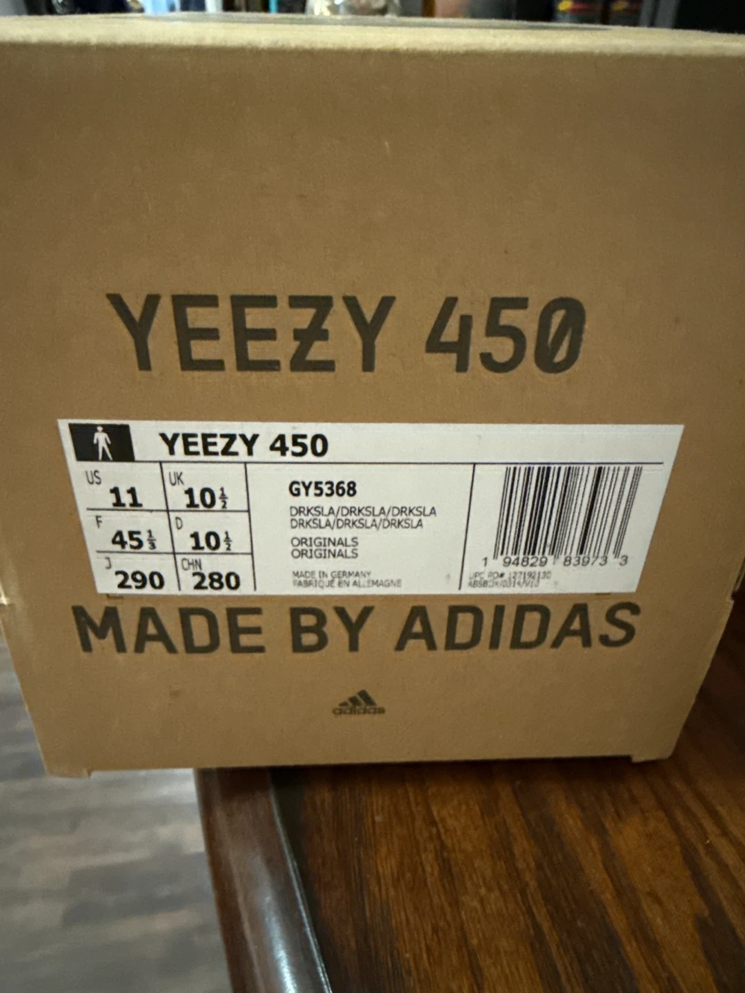 Selling a pair of Adidas Yeezy 450 in the Dark Slate colourway. These are a US size 11. Comes with the original box!