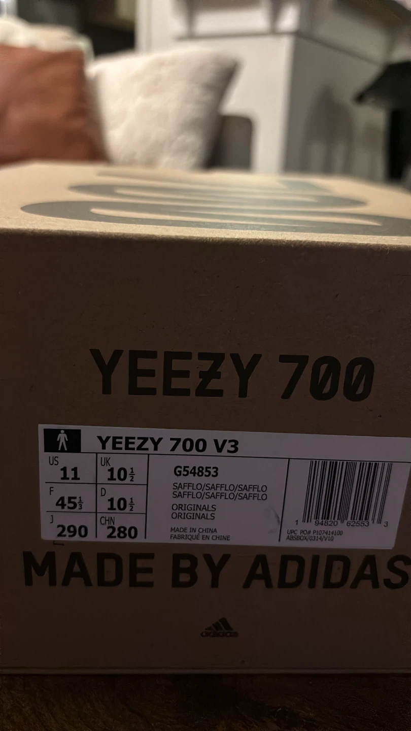 15Selling a pair of Adidas Yeezy 700 V3 in the Safflower colourway. These are a US size 11. They come with the original box