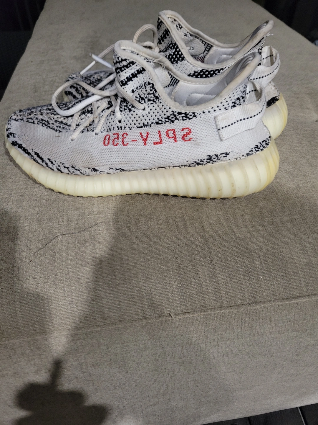 12Adidas Yeezy Boost 350 V2 Zebra. Men's size 9.5. Primeknit upper. Boost midsole. Cream coloured sole. Black and white. okay condition worn twice. open to trade for mountain bike