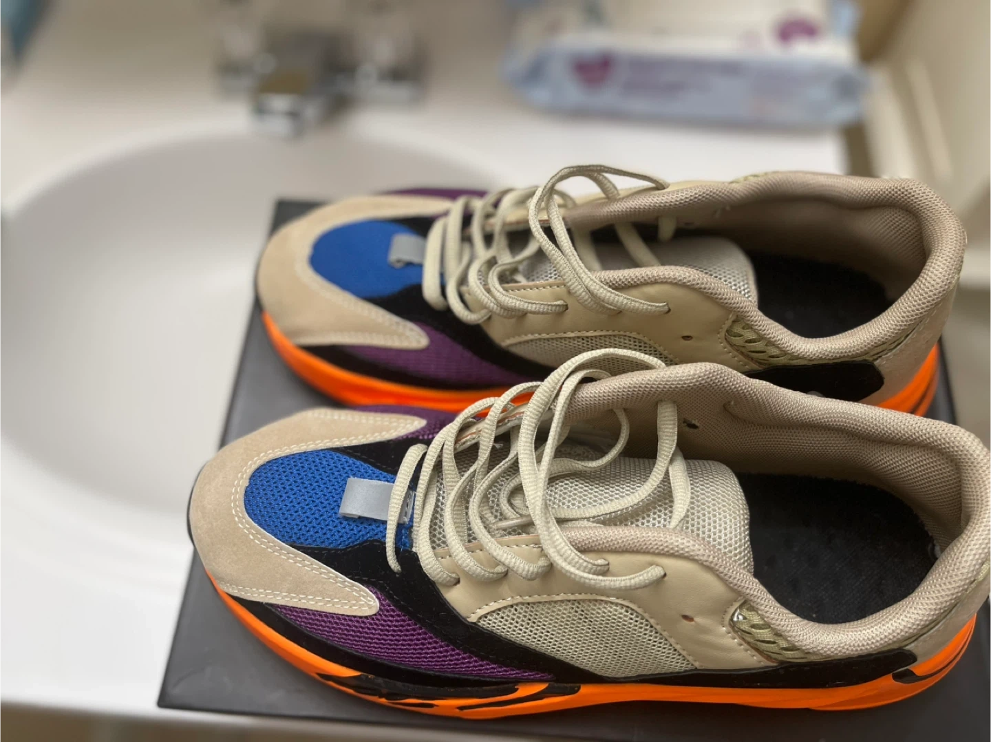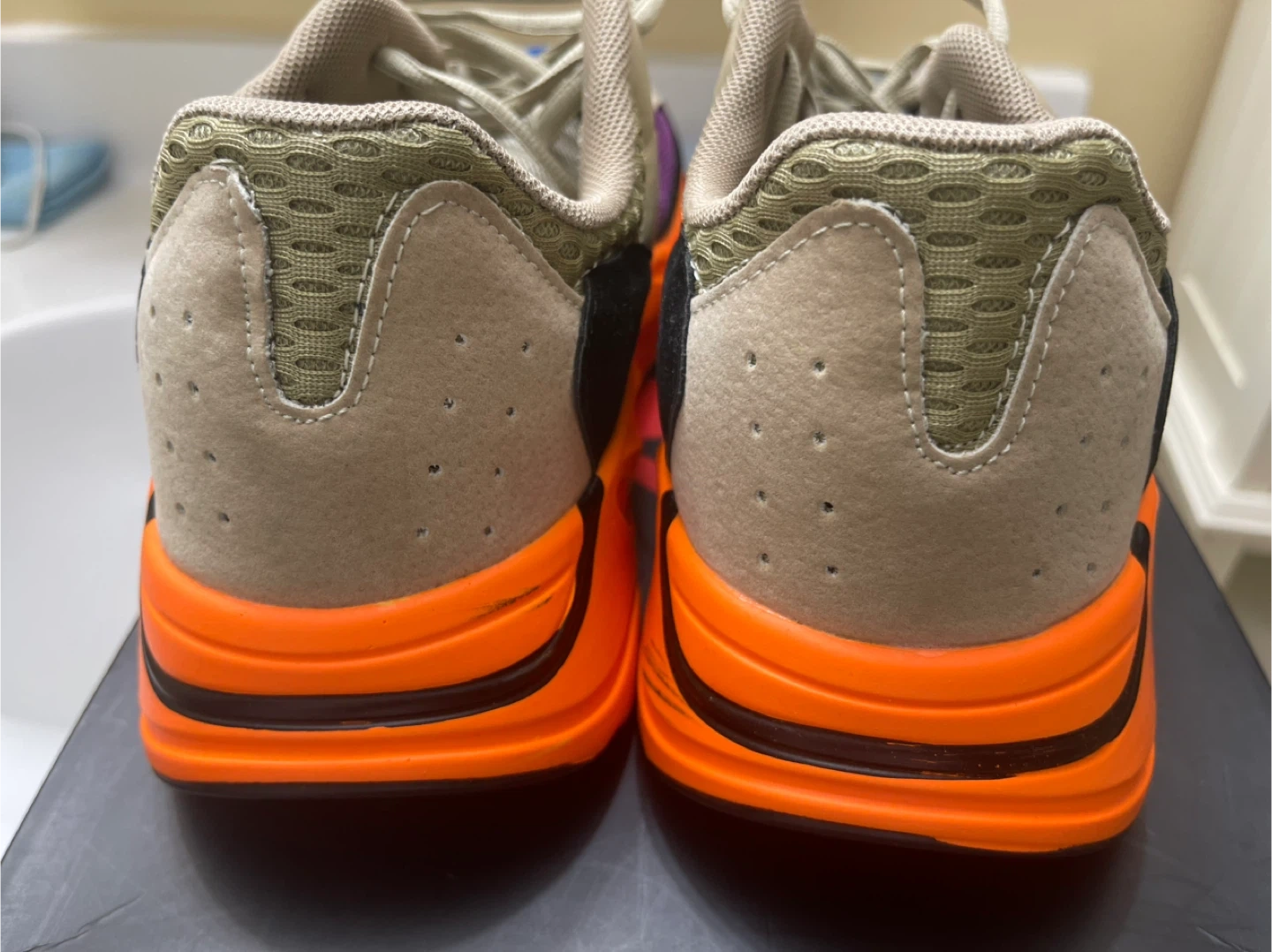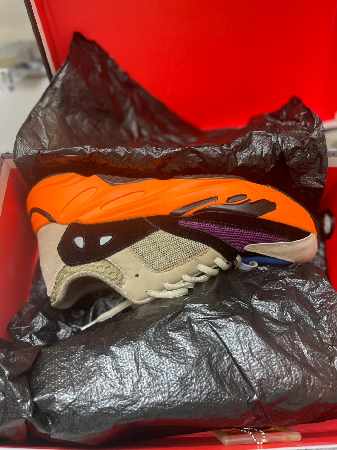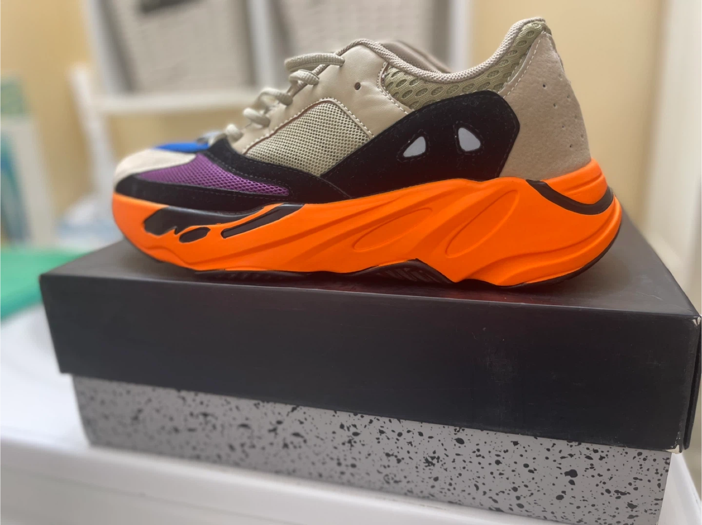 Selling a pair of Adidas Yeezy Boost 700 MNVN in the vibrant orange colourway! These sneakers are in great condition and come with the original box. A stylish and comfortable addition to any sneaker collection!