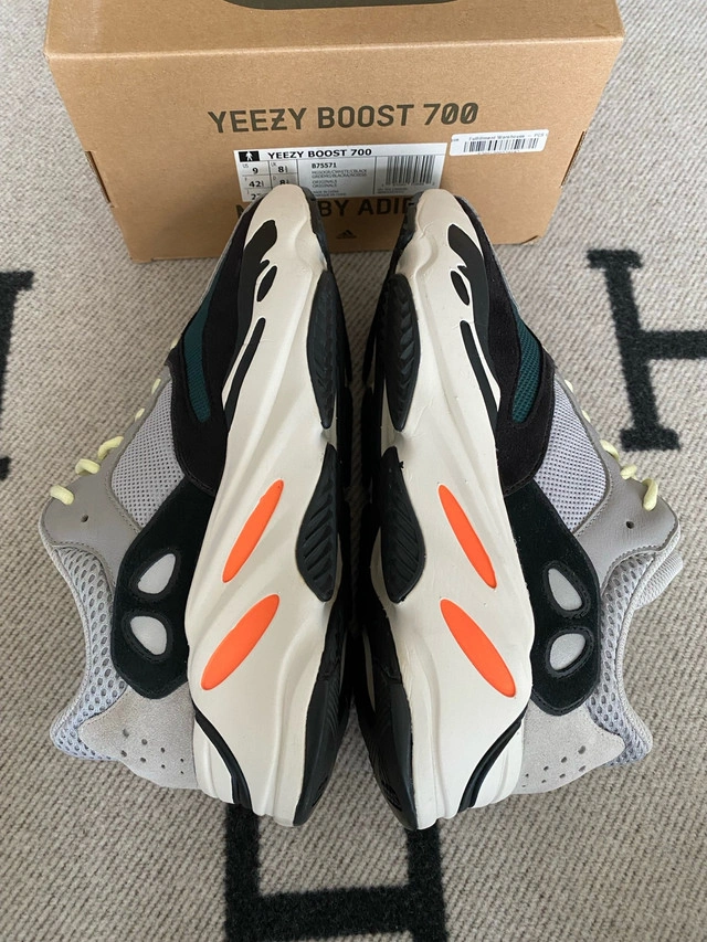 61Get ready to elevate your sneaker game with these Adidas Yeezy Boost 700 Wave Runner OG sneakers in size US9. These stylish and iconic shoes feature a blend of grey, teal, and black hues across a premium suede and mesh upper, offering both comfort and a distinctive look. The chunky midsole houses Boost technology for responsive cushioning. Note that these sneakers are in brand new condition. * **Brand:** Adidas * **Model:** Yeezy Boost 700 Wave Runner OG * **Size:** US9 * **Style Code:** B75571 Looking at similar listings, I'm pricing these at $550. If the ad is up, they're available!