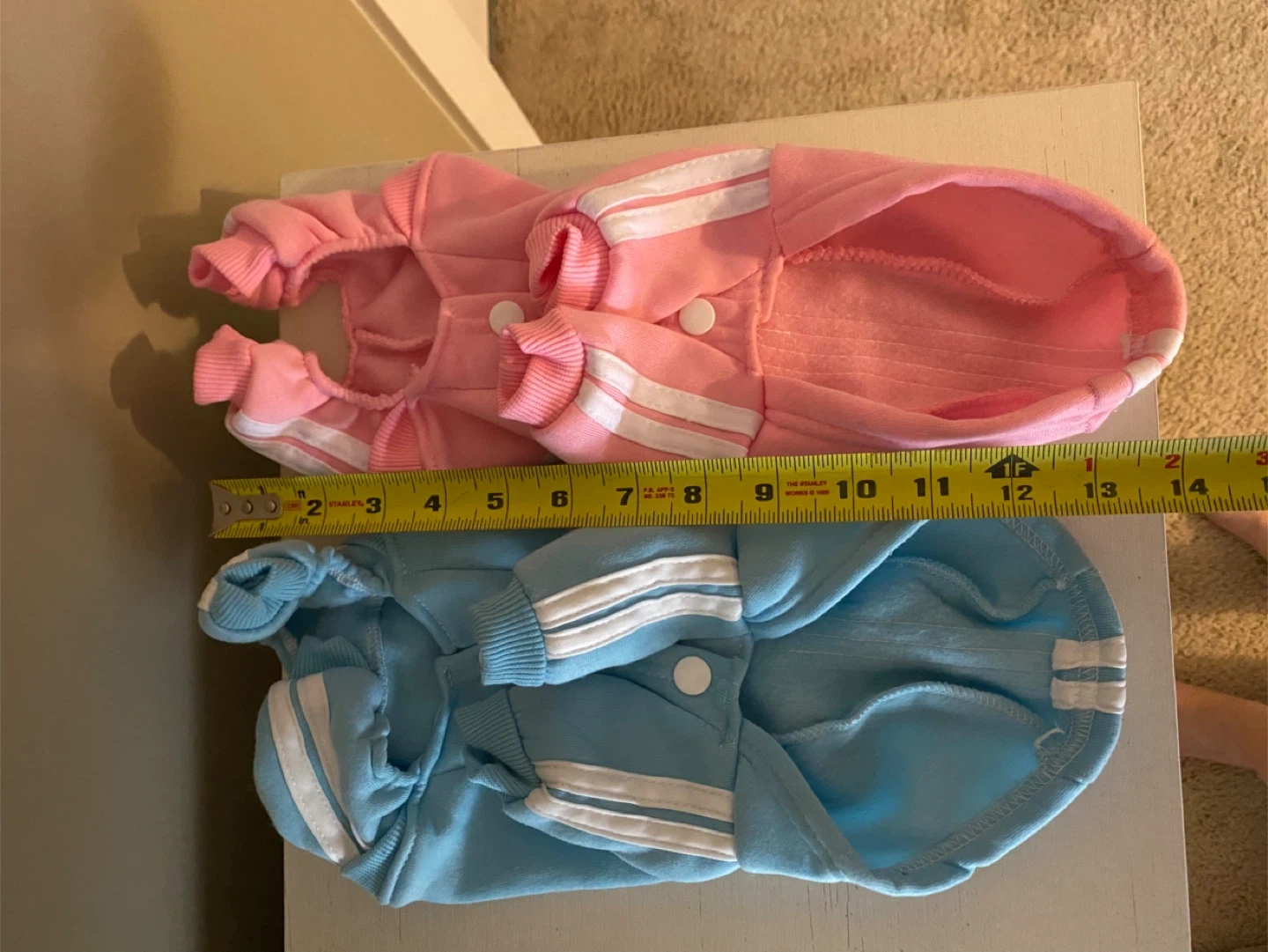 153Selling two adorable Adidog pet jumpsuits! One is a lovely pink and the other is a cheerful blue. Both are size small. They feature the classic three-stripe design and are perfect for keeping your furry friend cozy and stylish. Great condition! Cash only $10 each