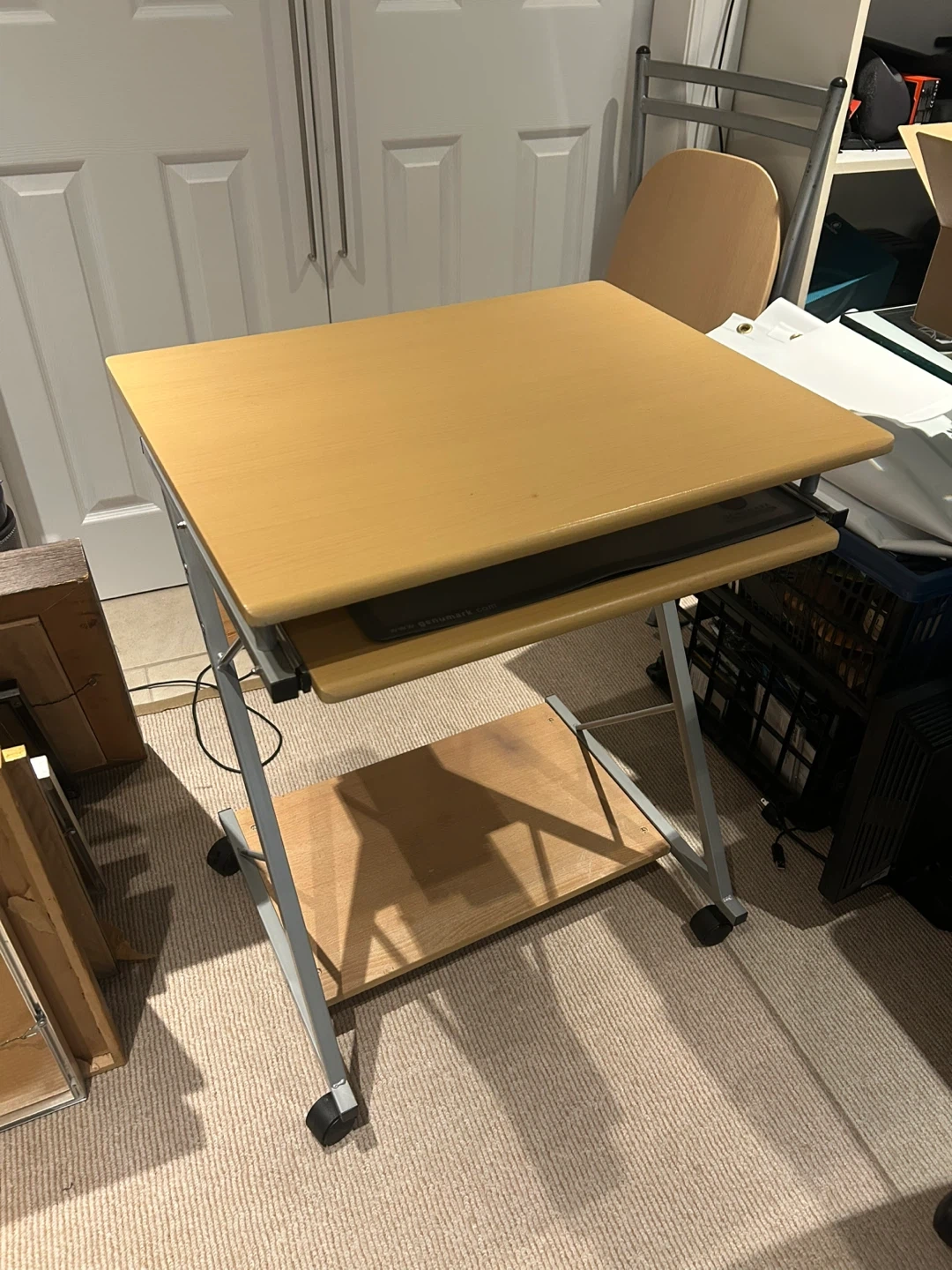 65Selling a handy drafting table with an adjustable top and wheels for easy moving. It's perfect for art projects or as a small workstation. The table is in great shape and ready for a new home!