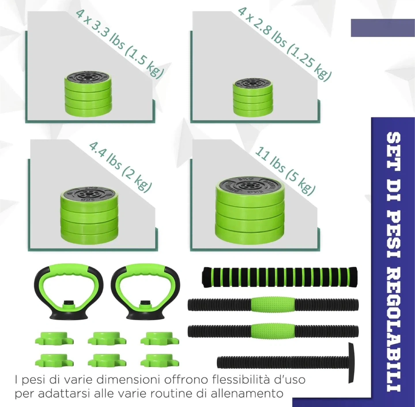 Adjustable Dumbbell Barbell Set - Green