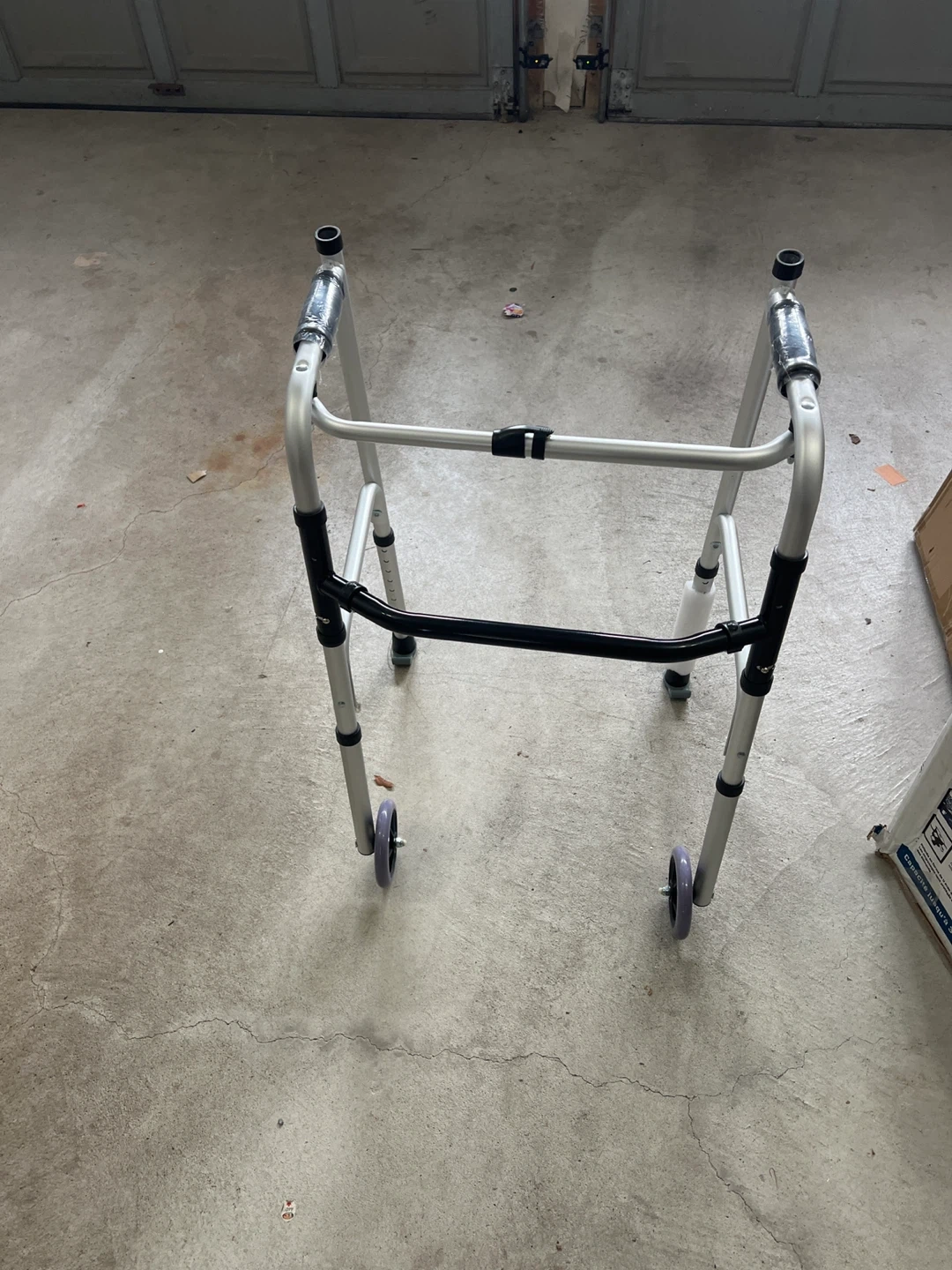 10Selling a used adjustable folding walker with wheels. It's in good condition and perfect for anyone needing a little extra support. The walker is lightweight and easy to fold for storage or transport. It has adjustable height settings to suit different users. Great for indoor or outdoor use! Pickup in Salem and Gillett