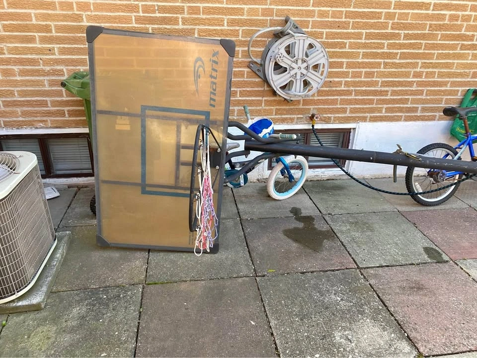 This is a used portable basketball hoop by Matrix, in good condition. The backboard is a durable, clear polycarbonate material. The height is currently set to 8 feet, which is great for younger players or practicing your shooting. The base can be filled with water or sand for stability, and it has built-in wheels for easy movement. It is perfect for a driveway or backyard. The net is in good shape and ready for some game time. Key Features: Brand: Matrix Condition: Used, good Height: 8 feet (adjustable) Backboard Material: Clear polycarbonate Base: Fillable with sand or water for stability, with wheels for portability Pickup only. Please message with any questions!