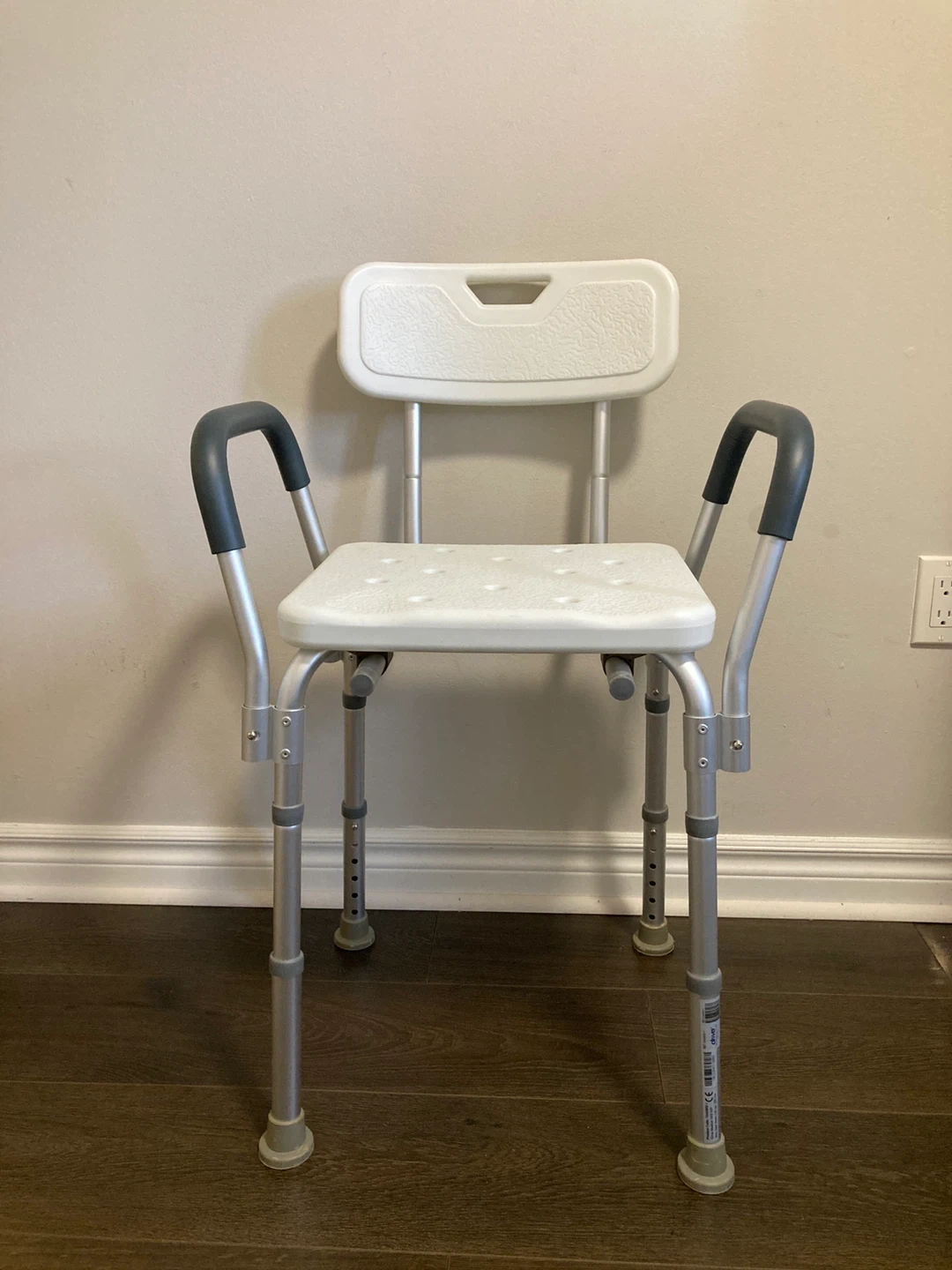 65Selling a gently used bath/shower chair. It features adjustable height legs to suit your needs and a comfortable backrest for added support. Perfect for anyone needing a little extra help in the shower or bath!
