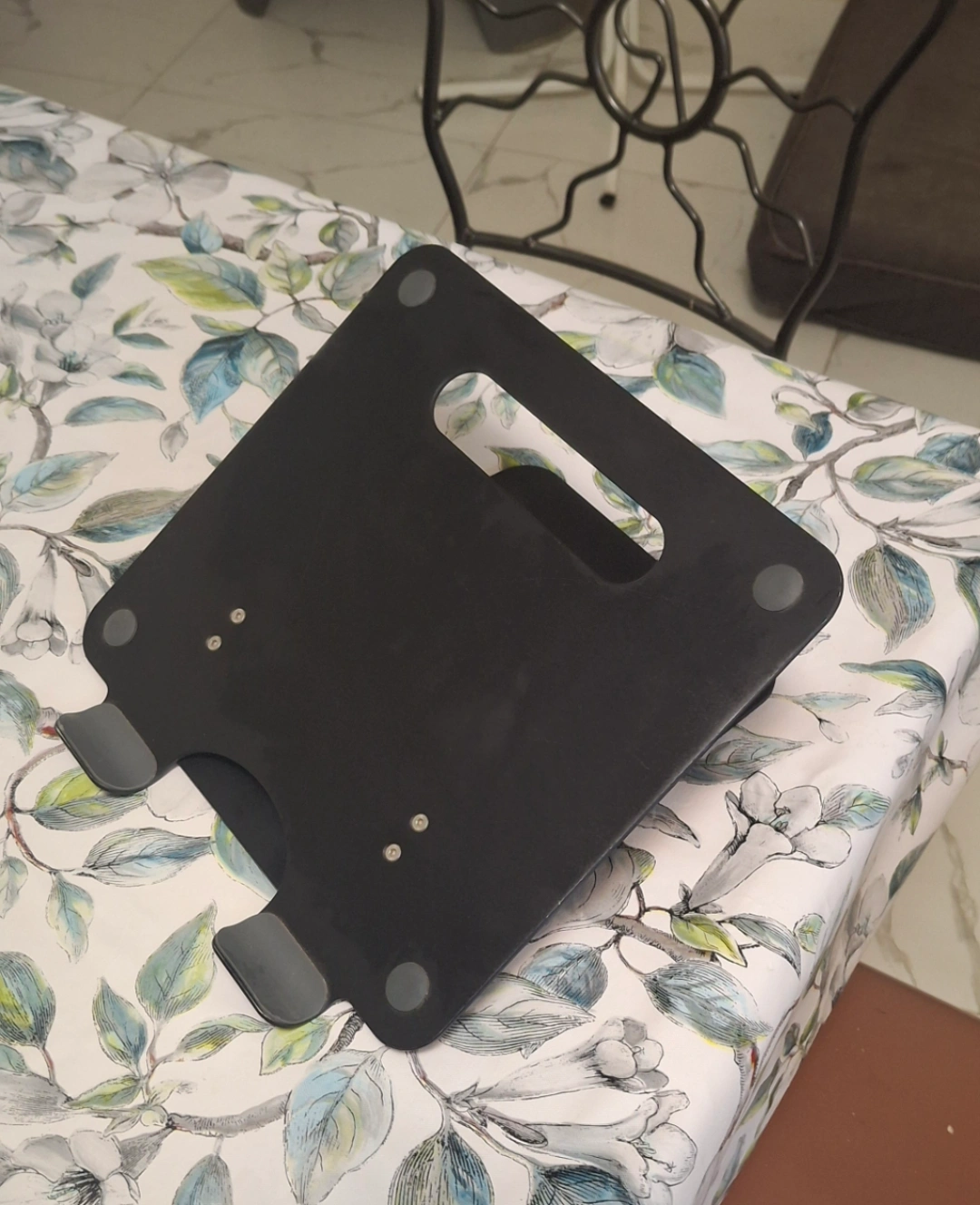 Selling a handy adjustable laptop stand in black! It's in great condition and perfect for keeping your laptop at a comfortable viewing angle. Great for working from home or setting up a more ergonomic workspace