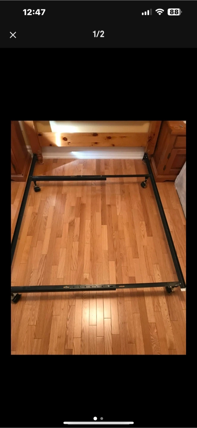Selling an adjustable metal bed frame, perfect for any bedroom setup! It comes with wheels, making it easy to move around when needed. Great for anyone looking for a sturdy and versatile bed frame