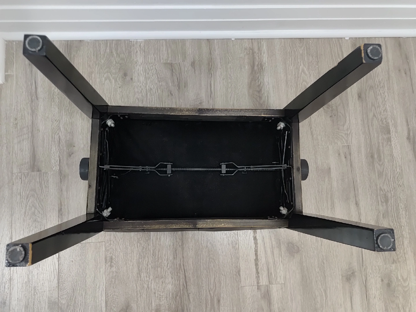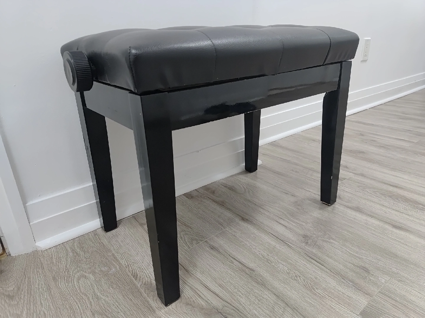 Used adjustable piano bench in good condition. The top measures approximately 22 - 24 inches in length and 13 - 14 inches in width. Located near Eaton Centre downtown Toronto