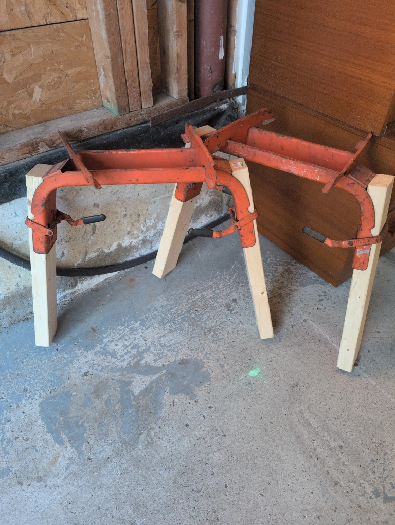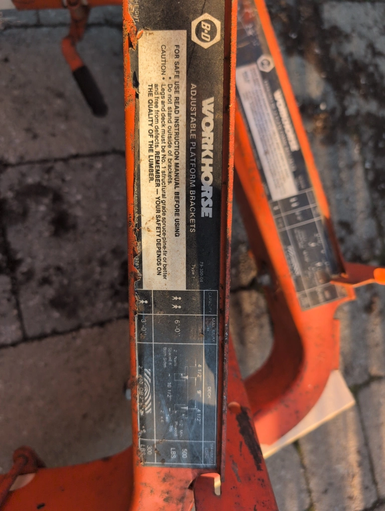 65Selling a pair of adjustable platform brackets . They appear to be in used condition, with some wear and tear, but still functional. Great for supporting pipes or other materials during construction or repair projects