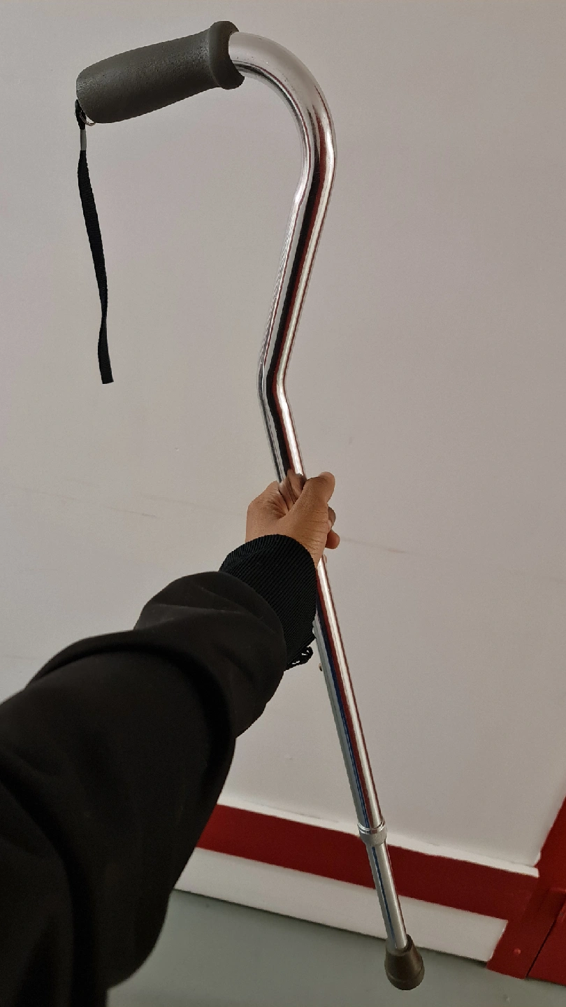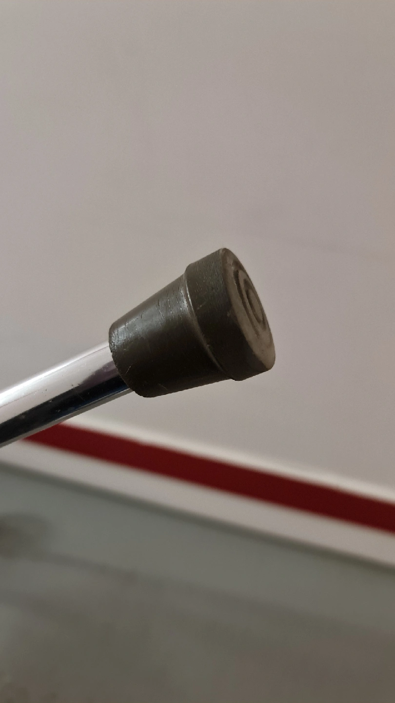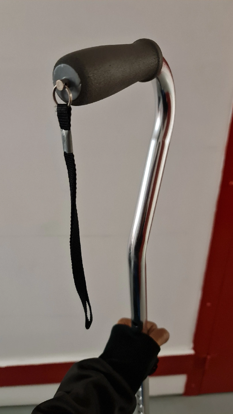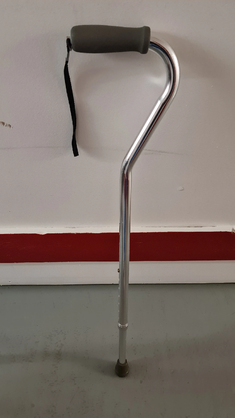 Gently used adjustable walking cane - silver staff and grey, foam top - ergonomic handle for comfortable grip - Height is adjustable - Good condition, ready for use immediatly.