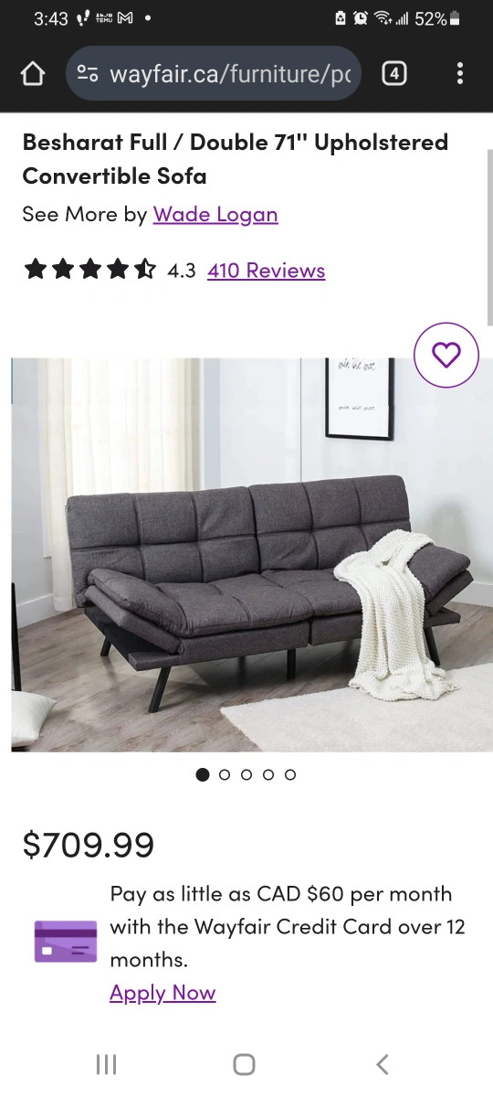 Dark grey fabric. Black metal legs. It's ridiculously expensive to ship back.... better to sell here. Back and arms adjust to a range of seating options. It's been stored covered with a sheet. It adjusts so you can recline. Has a small footprint. My cats have loved the bottom and back a bit.. (I'll vacuum it throughly with the Max mode on my Dyson for the buyer.) Second picture shows price new (must open it). Pick up only in McKenzie. You will need 2 people to load it. $250 OBO
