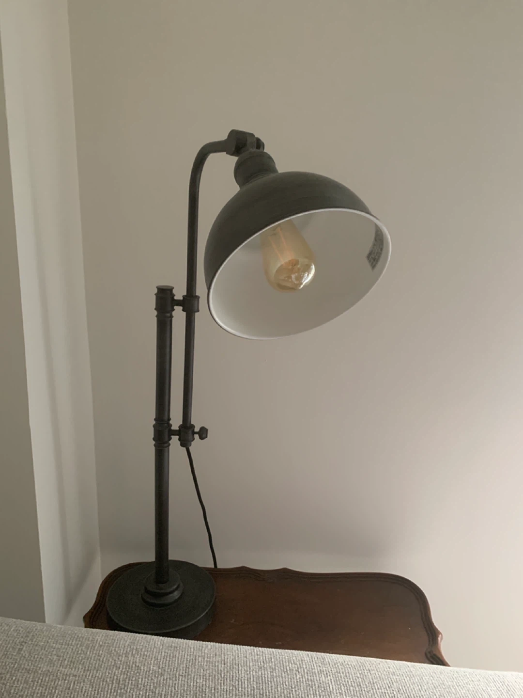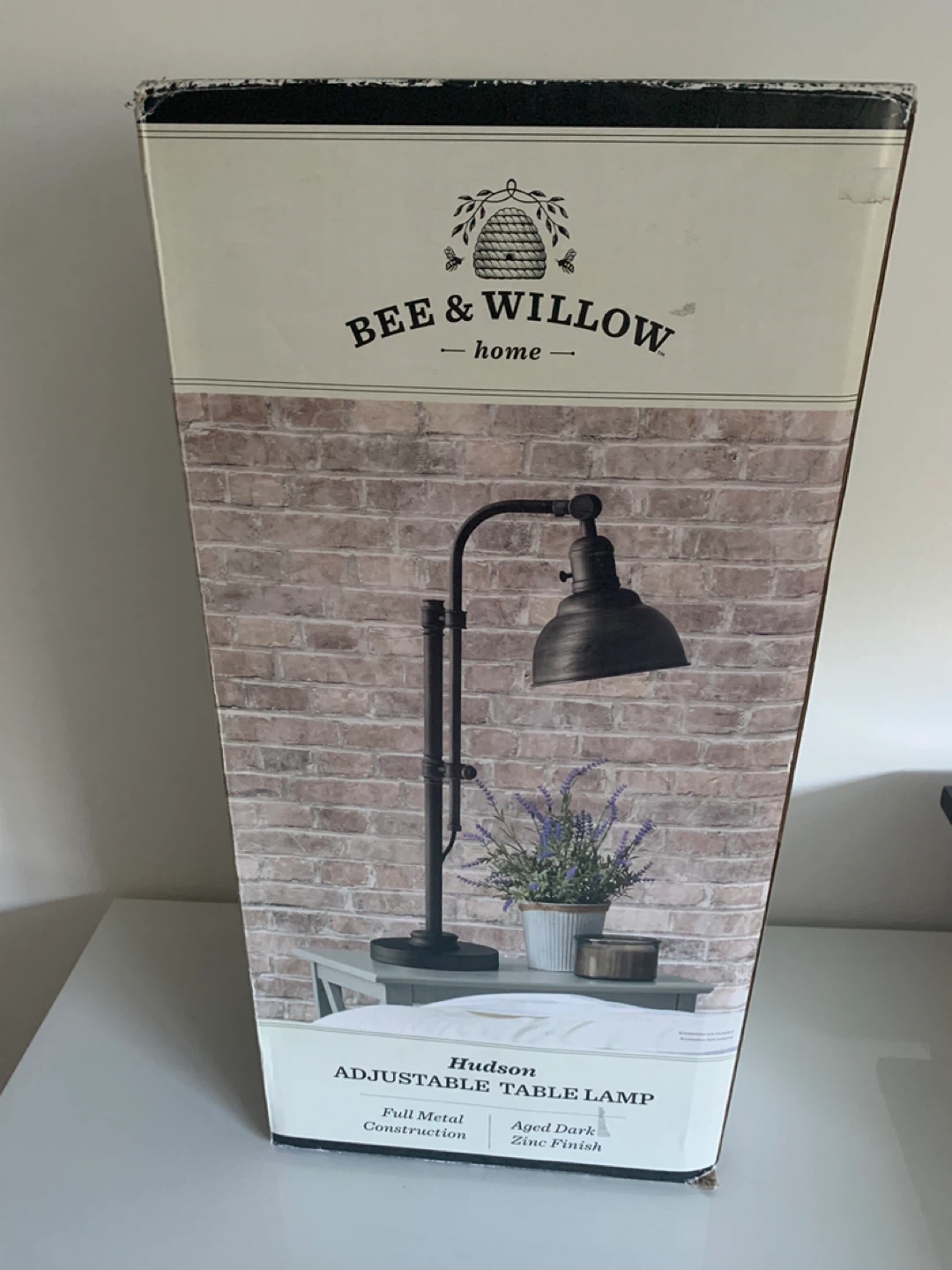 56Selling a Bee & Willow Hudson adjustable table lamp in aged dark zinc finish. It's a full metal construction and comes with the original box! We have a second lamp which is the one in the photo as one being sold is in box.