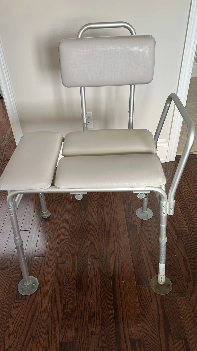 5Selling a gently used transfer bench with a backrest! It's perfect for anyone who needs a little extra support in the shower or bathroom. The bench is adjustable, so you can customize the height to fit your needs. It's in great condition and ready to go to a new home