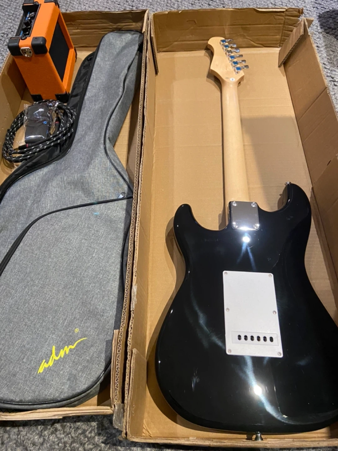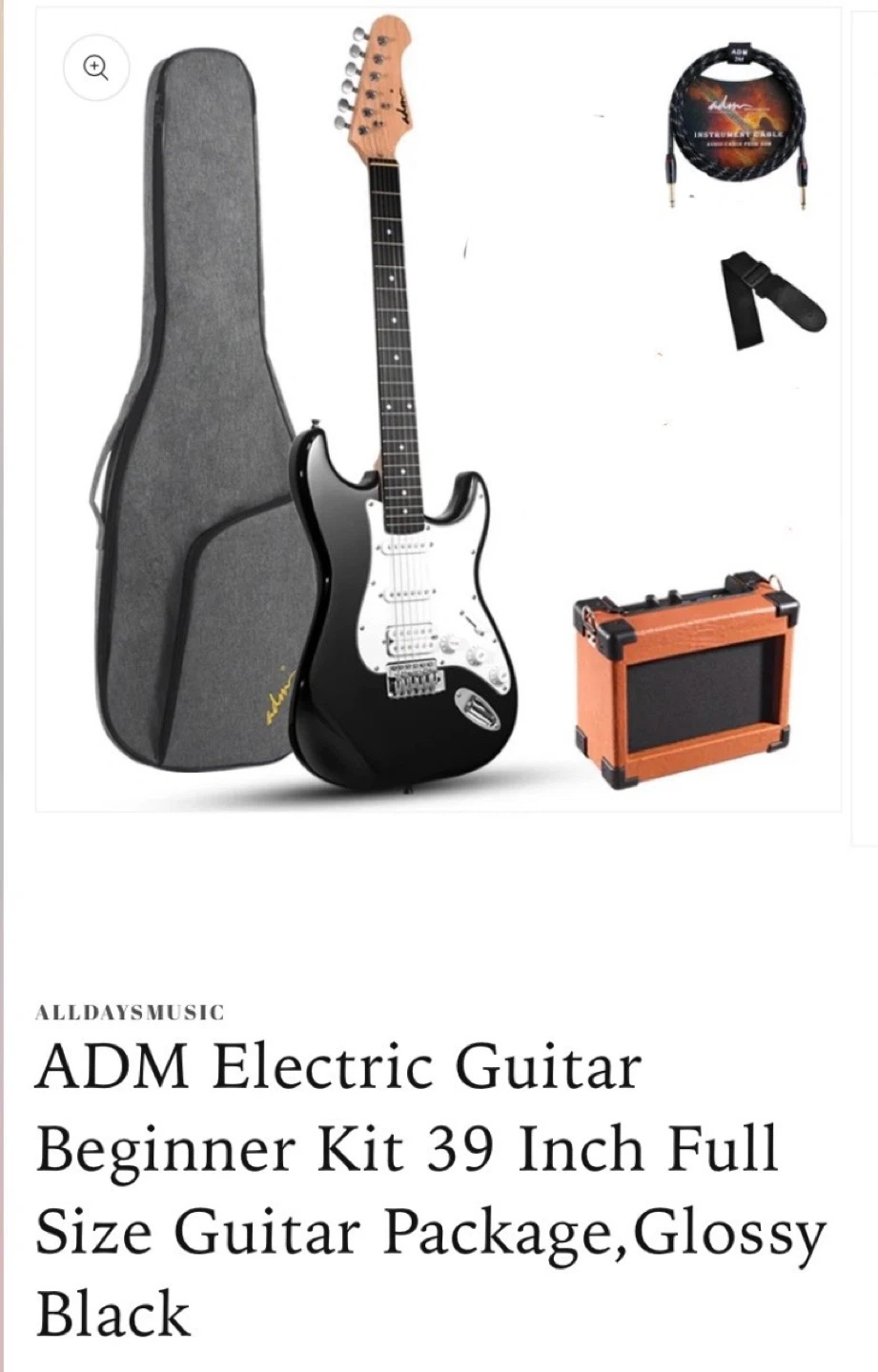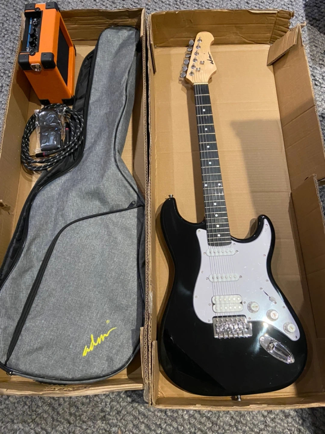 ADM Electric Guitar 39” Right Included carry case No vibrato Amplifier turns on but, I can’t get sound out of it. Will include for free for you to tinker with. Guitar in excellent condition. Still has protective wrap on front. $90 (retail $235 plus tax) Pickup in Whitby