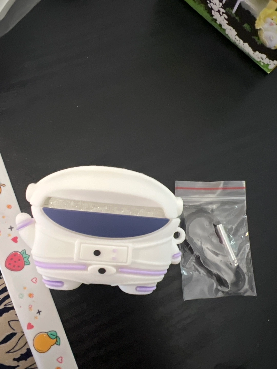 254Cute astronaut-shaped Airpod case. Features a purple and white design. Includes a small carrying strap. Airpod pro 2nd gen