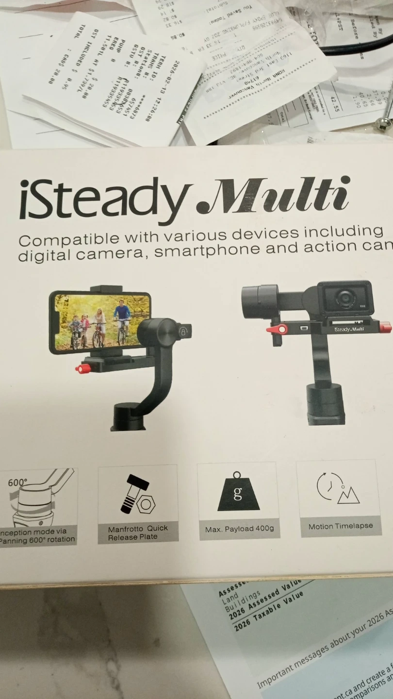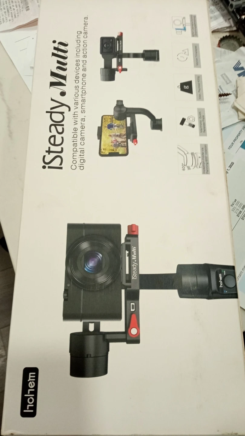 This is the Hohem iSteady Multi 3-axis handheld stabilizing gimbal, designed for compact digital cameras. It offers panning 600° rotation and a max payload of 400g. It's compatible with various devices, including digital cameras, smartphones, and action cameras.