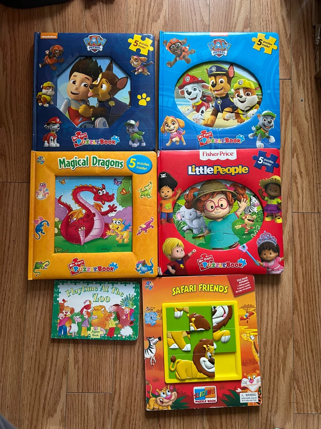 Sell bundles of a collection of My First Puzzle Books perfect for little ones. Includes Paw Patrol, Little People, Magical Dragons, Playtime At The Zoo, and Safari Friends themes. Each book contains 5 puzzles inside!