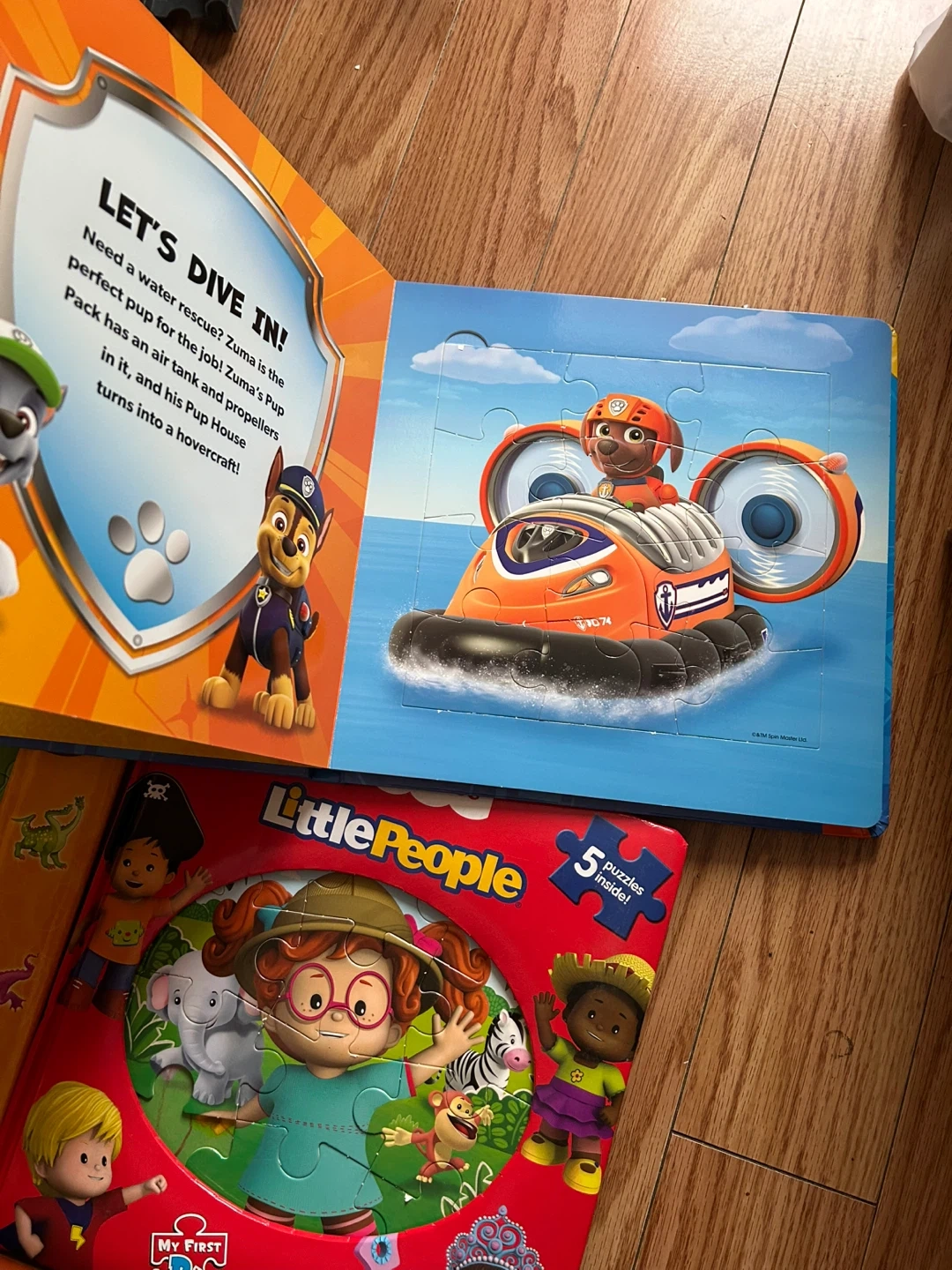 The Paw Patrols and The Magic Gragons and The Zoo are completely no pieces missing. The little people missing one piece. The Safari Friends missing two pages puzzles.