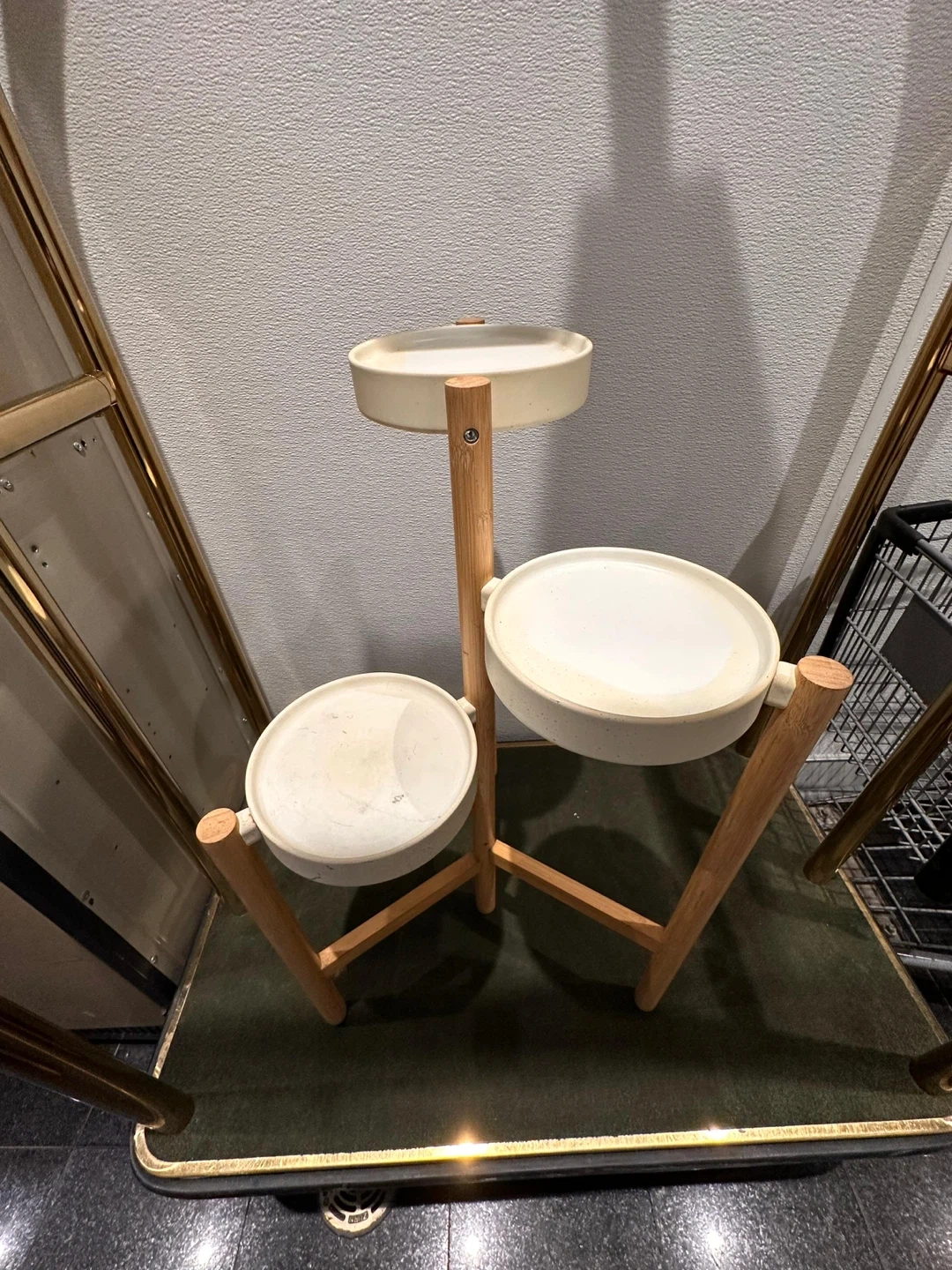 This 3-tier plant stand features a modern design with ceramic trays and a natural wood frame. It's perfect for displaying your favourite plants indoors or on a covered patio. The tiered structure maximizes vertical space.