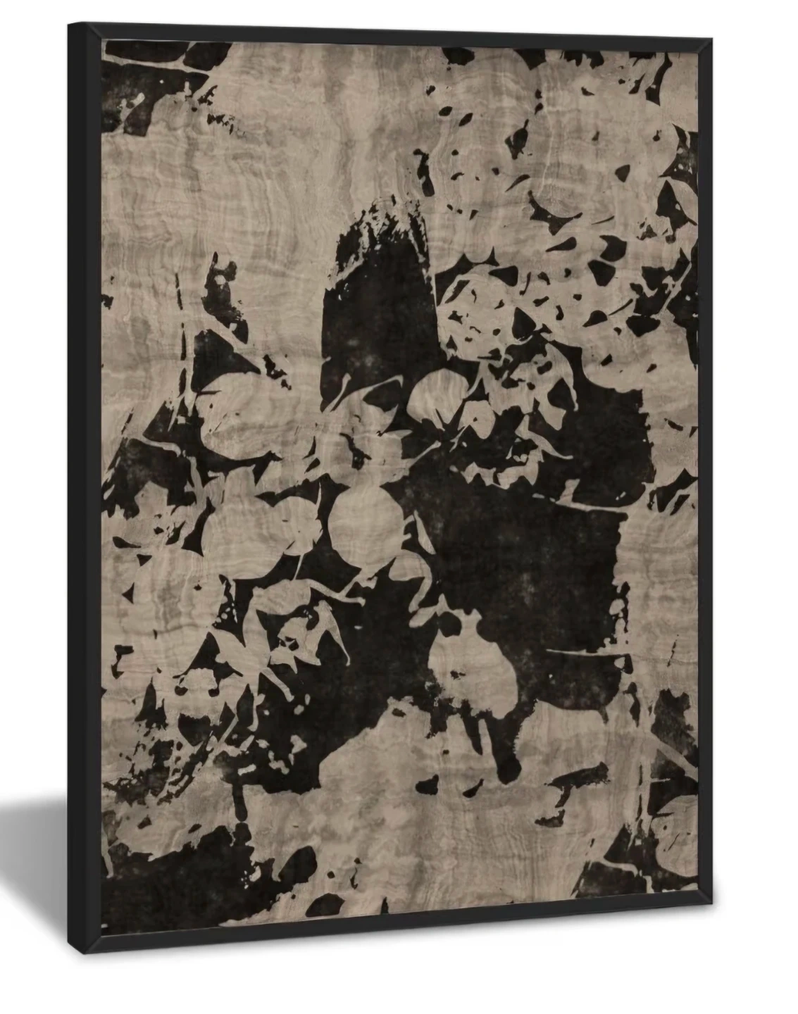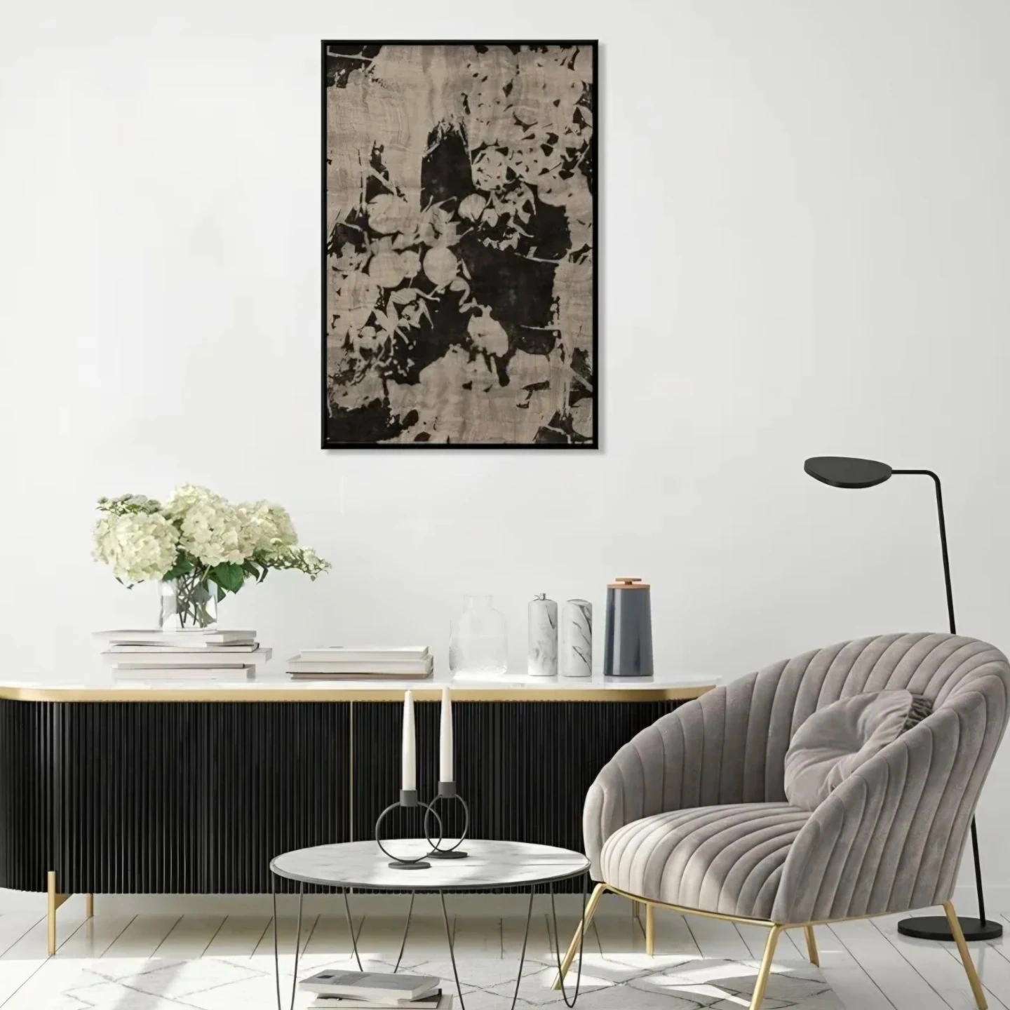 Minimalist decor, Vintage Abstract Floral wall art. Print on canvas. Framed. 8"x12"