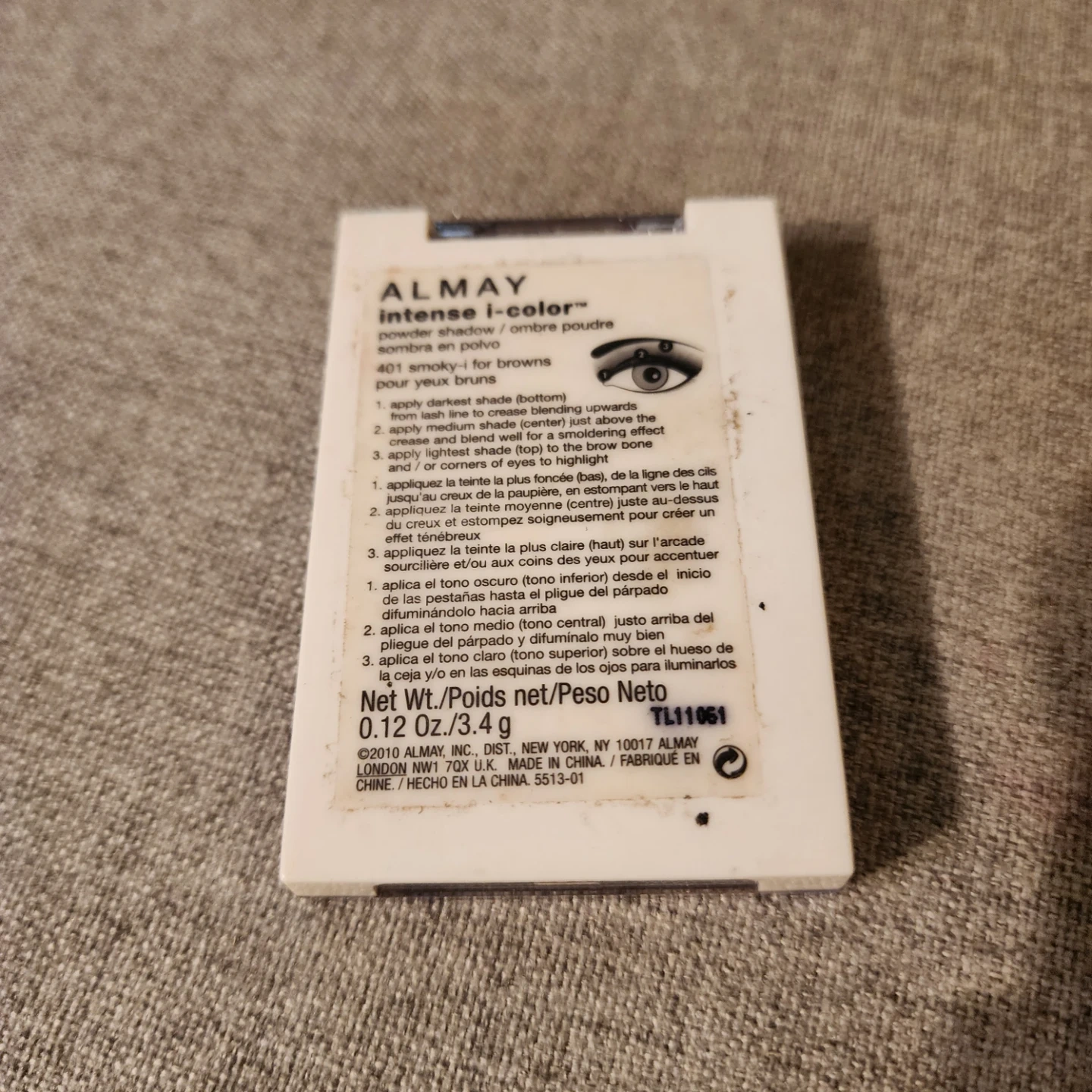 Buy & SellAlmay Intense i-color 401 Smoke-ly Smokes EyeshadowAlmay Intense i-color 401 Smoke-ly Smokes Eyeshadow$5Almay Intense i-color eyeshadow in the shade 401 Smoke-ly Smokes. This palette includes three shades of powder eyeshadow. Net wt./Poids net 0.12 Oz./3.4 g.BrandAlmayWHERE TO MEETCheck LocationView MapSELLERverifiedTia MiaOld Rexdale20611 reviews0 chats·0 favorites·2 viewsSEND CHAT TO SELLERHi Tia Mia! I’m interested in your listing.Hi Tia Mia! I’m interested in your listing.Get the Karrot app to chatSign In to chat