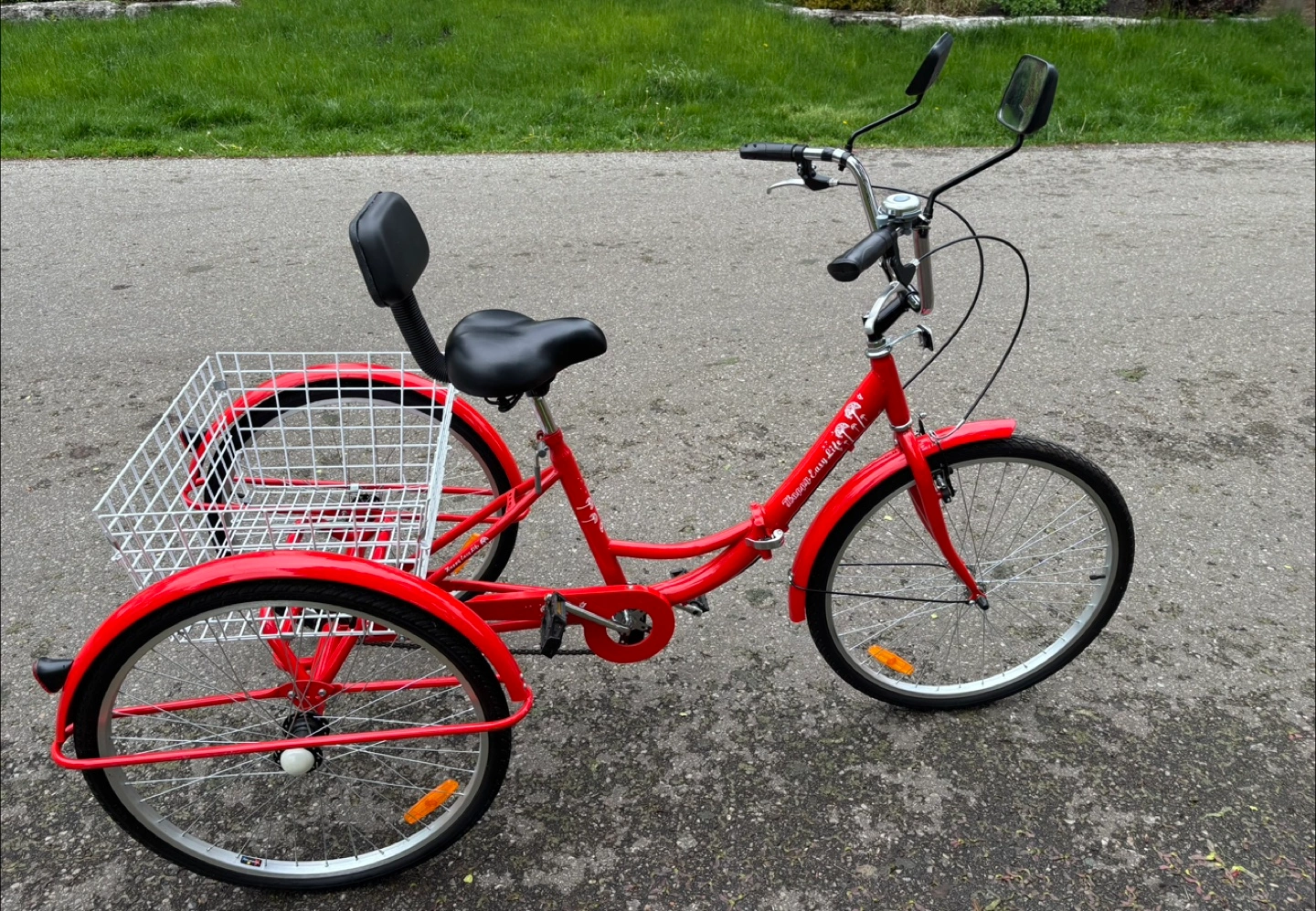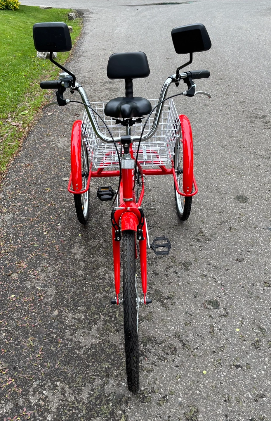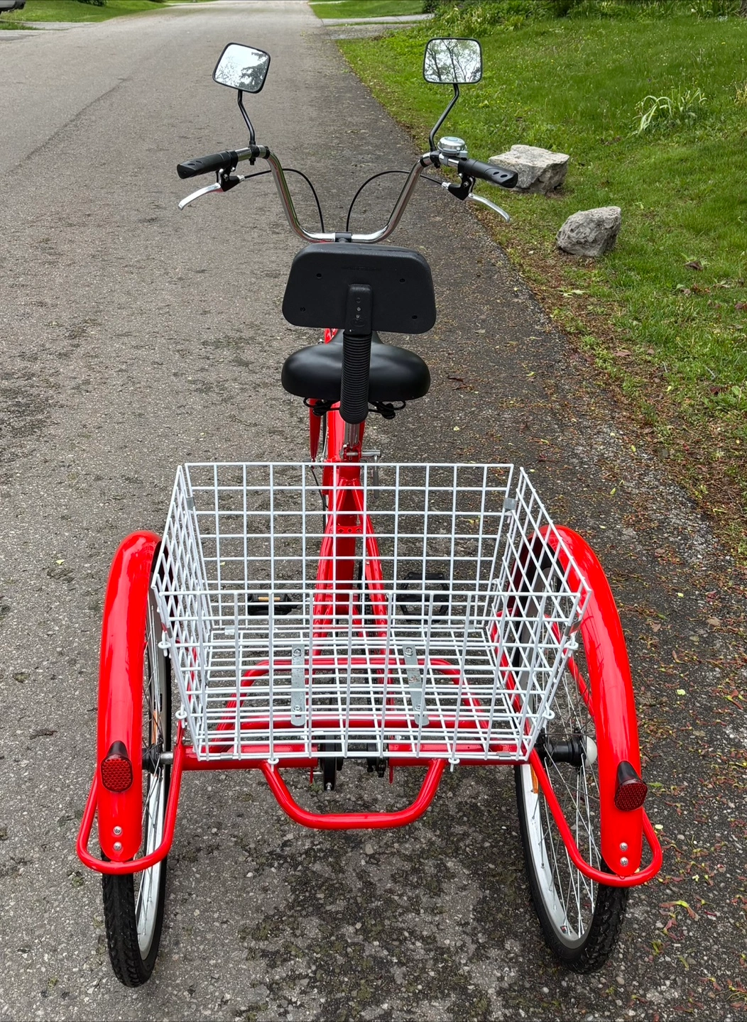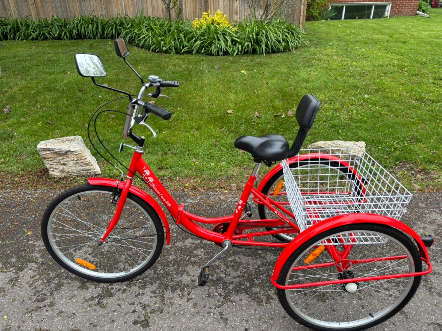 15Excellent condition, barely ridden Sturdy Carbon Steel Frame Weight limit up to 330 lbs/150 kg 24"/61 cm wheels provide a comfortable riding experience for people between 4'11"/150 cm and 5'9"/175 cm tall Quick-release buckle, to fold bike in half allowing for easy transportation, space-saving storage, and convenient parking Rear view mirrors purchased separately for increased safety Rubber handlebars and soft-padded saddle with backrest are height adjustable to welcome riders of all sizes Large Rear Basket: large rear basket, 2.8 cubic feet of space for belongings, groceries, and furry companions Reflectors and bell for increased safety when riding at night Pick Up Dixie Rd & QEW Near Dixie Outlet Mall South East Mississauga X-posted