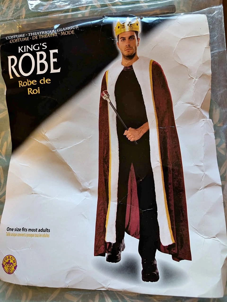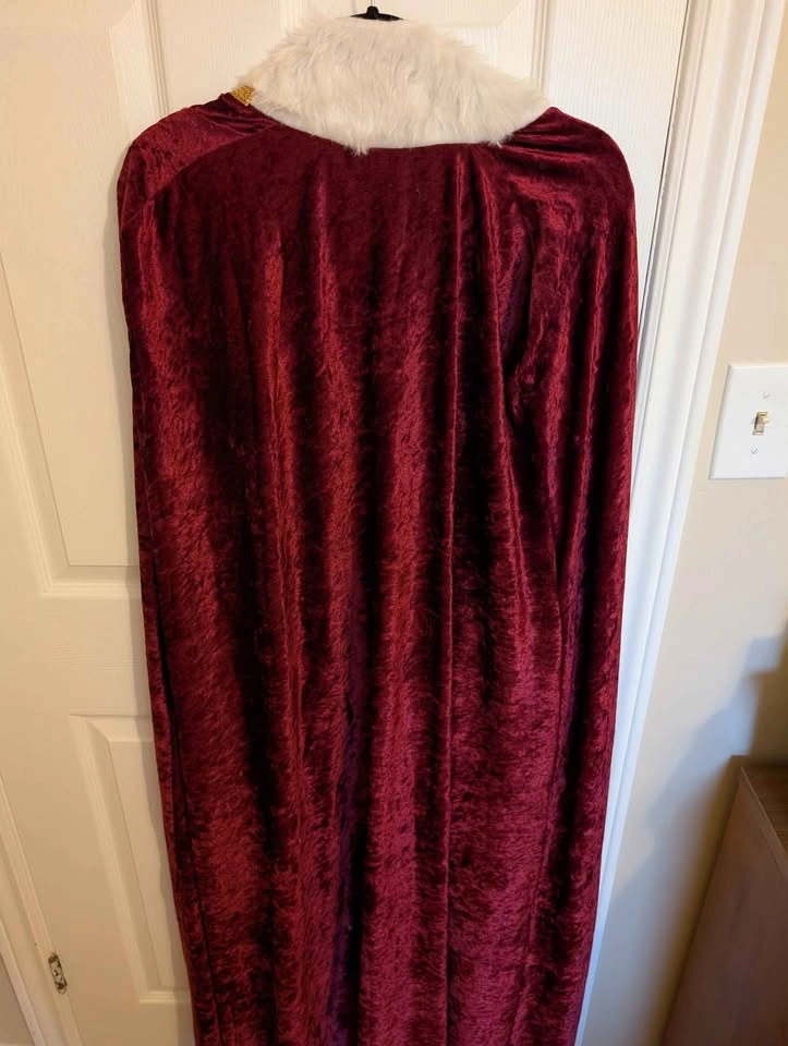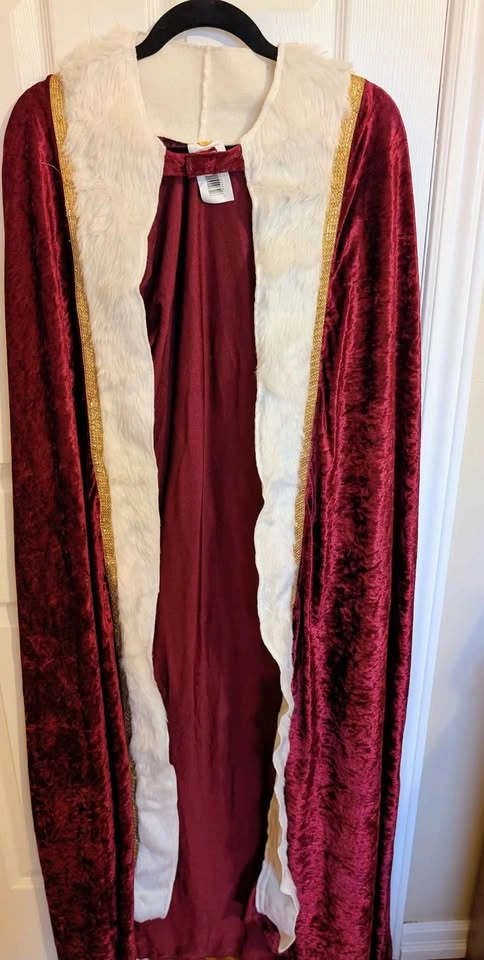 10Adult Burgundy Robe for Halloween Costume - $20 Gently stored, never worn. Perfect for Halloween! Optional: Gold metal adjustable crown available for an additional $10. Pickup in North St. Catharines. Cash only, please.