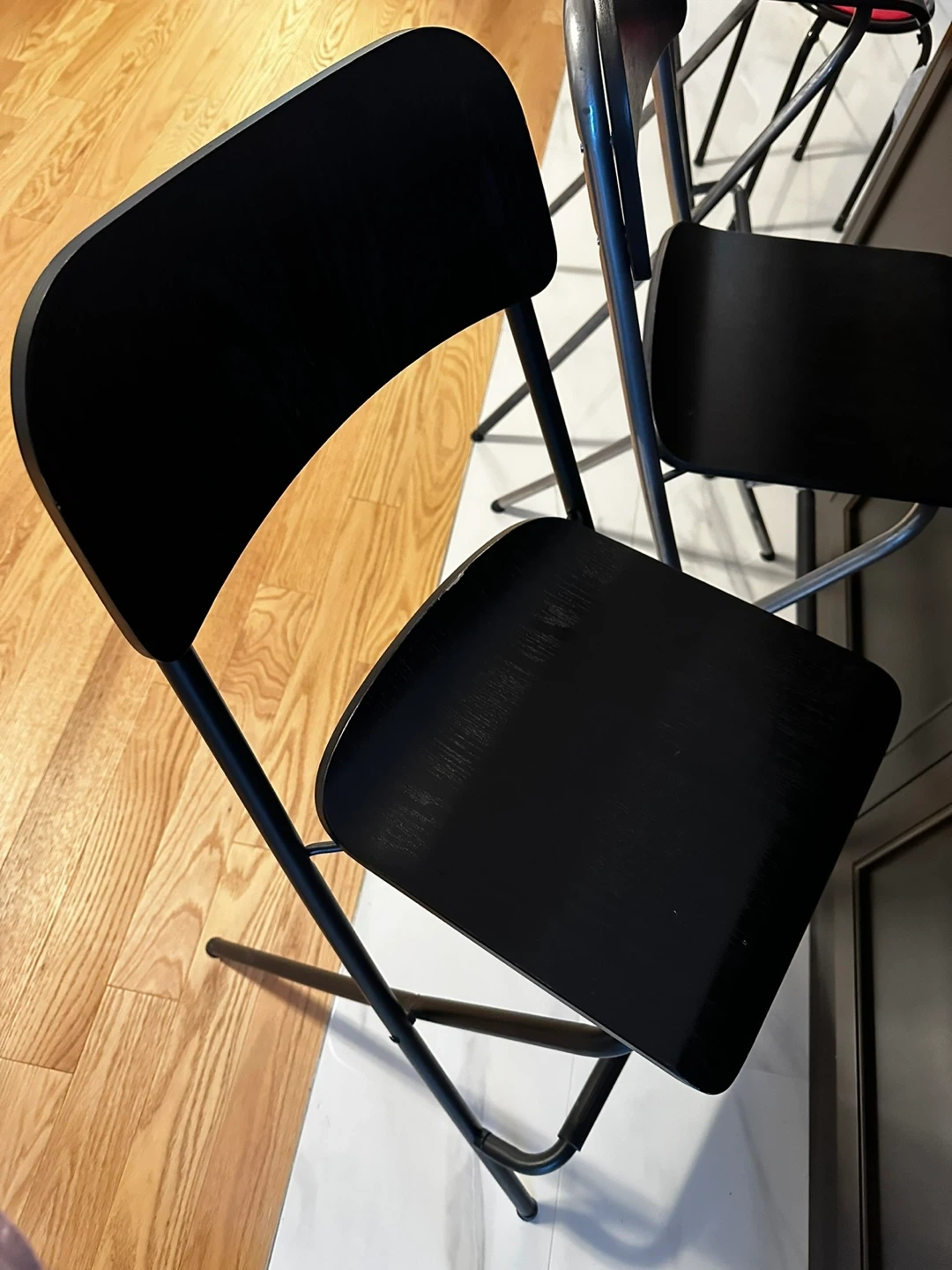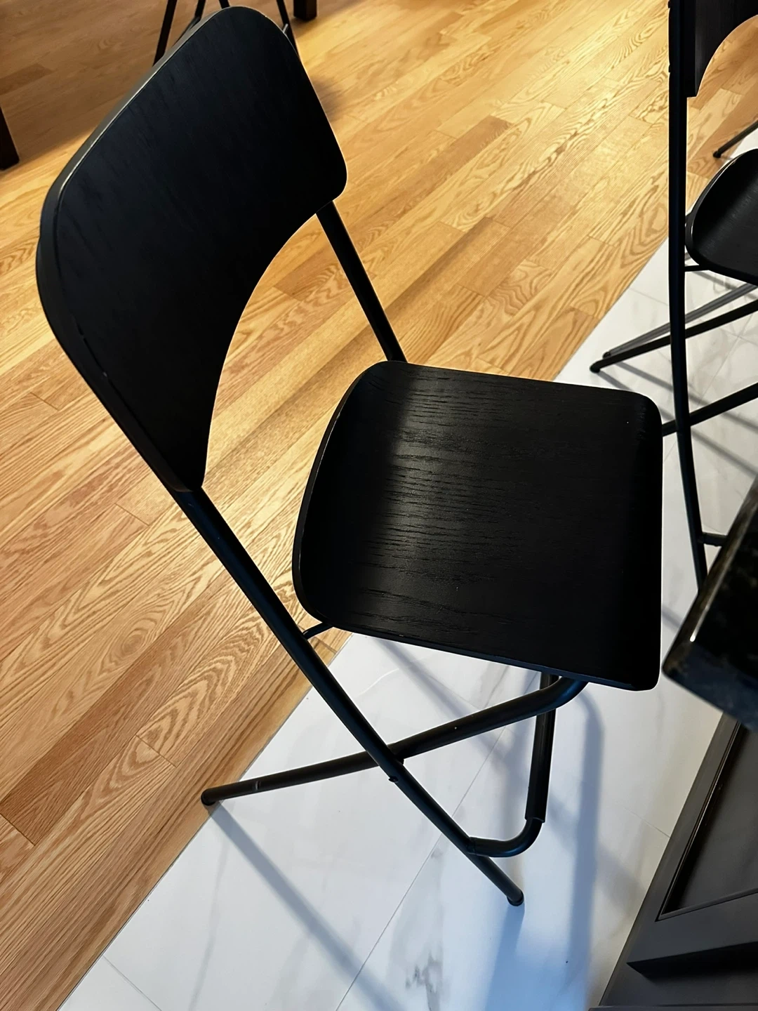 Buy & SellIKEA 4 Black Folding Bar StoolIKEA 4 Black Folding Bar Stool$92A sleek black folding bar stool with a metal frame. Perfect for extra seating when you need it. Sturdy construction for reliable use.ConditionLike newWHERE TO MEETNear markham stouffville hospitalView MapSELLERverifiedFionaCornell600 reviews0 chats·0 favorites·10 viewsSEND CHAT TO SELLERHi Fiona! I’m interested in your listing.Hi Fiona! I’m interested in your listing.Get the Karrot app to chatSign In to chat