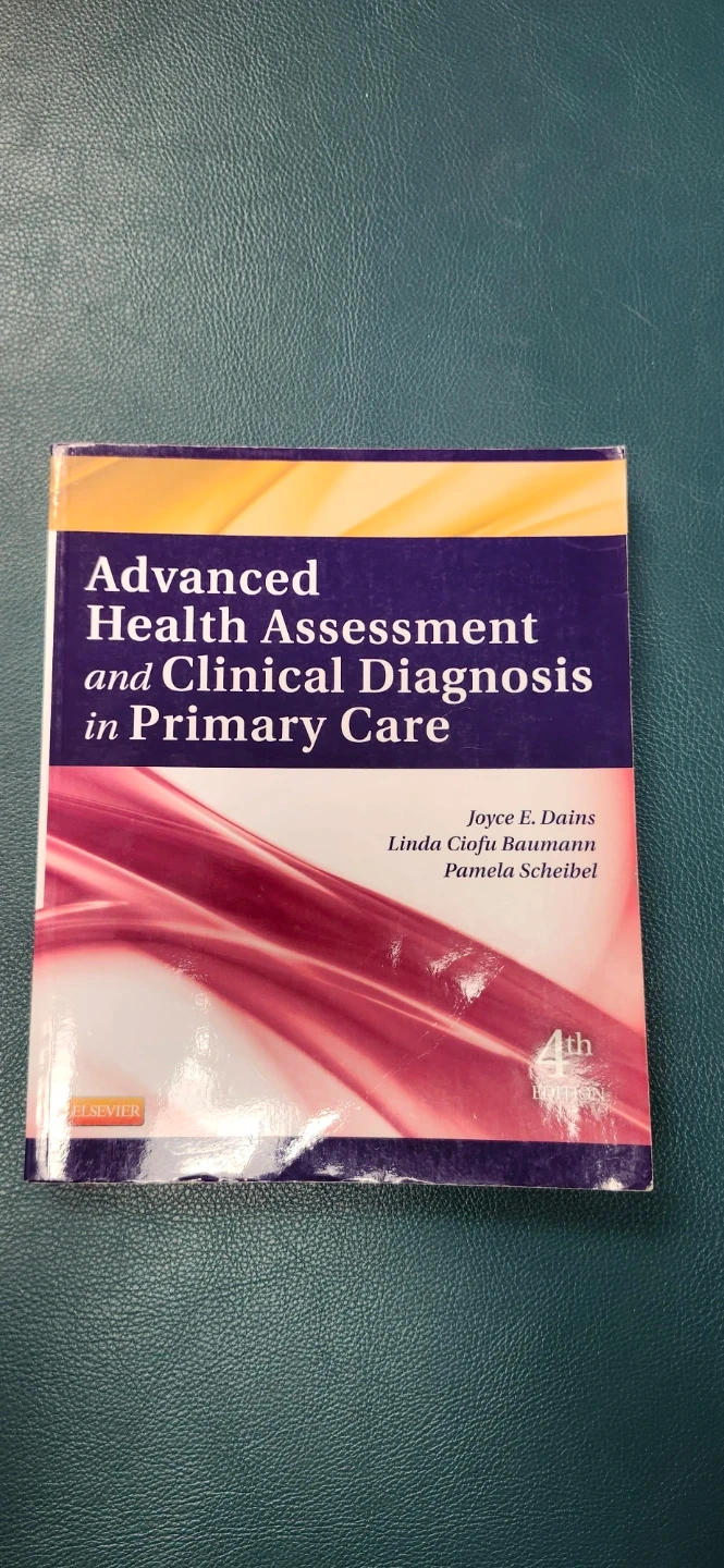 65Selling the textbook "Advanced Health Assessment and Clinical Diagnosis in Primary Care", 4th Edition, by Joyce E. Dains, Linda Cinfu Baumann, and Pamela Scheibel. It's a great resource for anyone in the medical field or studying to be a nurse/RN or physician assistant