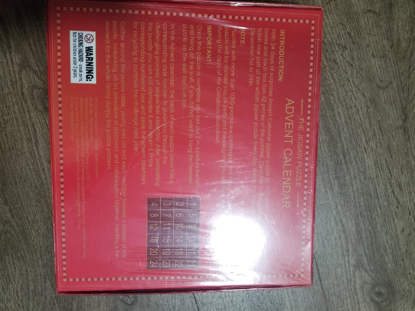 240Get ready for the holidays with this Advent Calendar jigsaw puzzle! It has 1008 pieces in total, with 42 pieces for each of the 24 days of December leading up to Christmas. Enjoy a fun and challenging activity as you piece together a festive scene. Brand new
