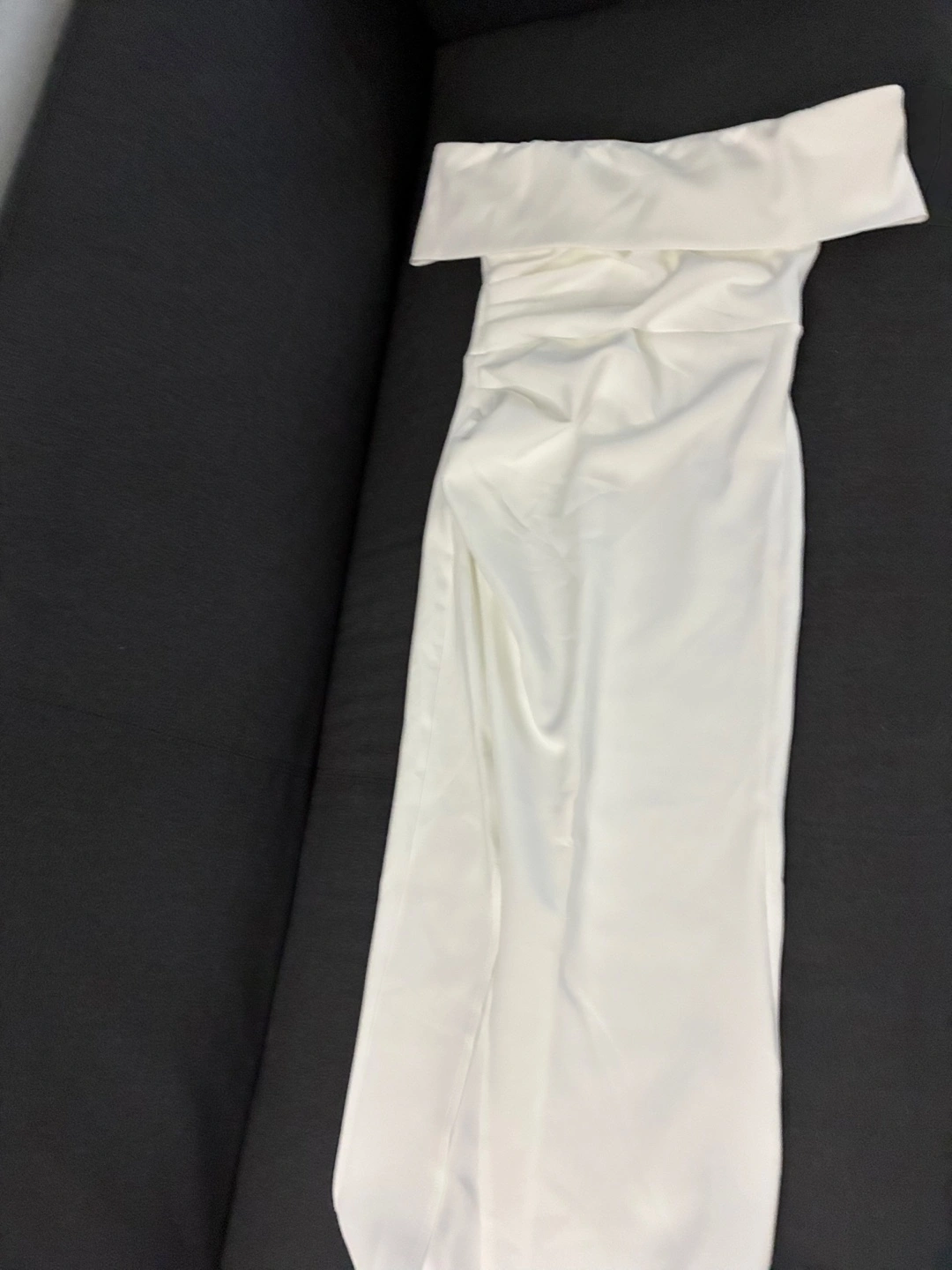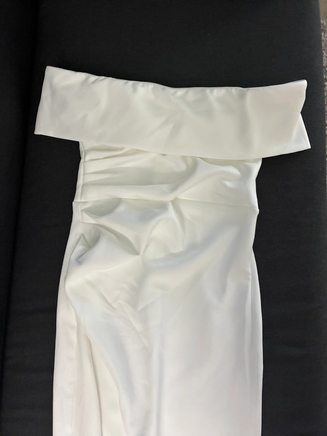 This is a beautiful white off-shoulder dress from Adyce. It's perfect for a special occasion or a night out. The dress is in excellent condition and never used. This is one of my bridal reception dress option.Feel free to ask any questions! Waist: 67cm (but can stretch till 70cm) Length: 105cm Hip size: 89cm (but stretchy)