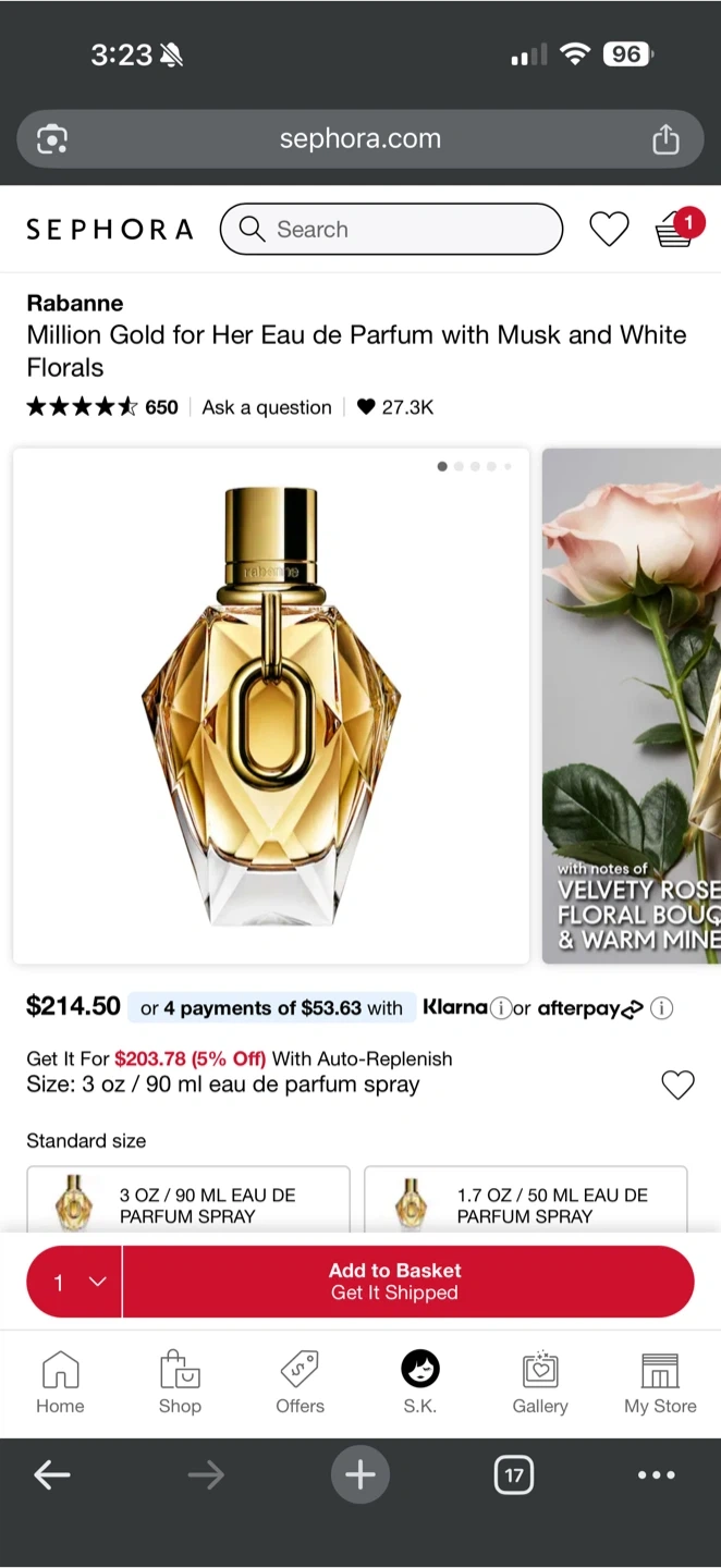 3)Paco Rabanne Million Gold 90ml with box- $190 Full (retails $214 without tax at Sephora)
