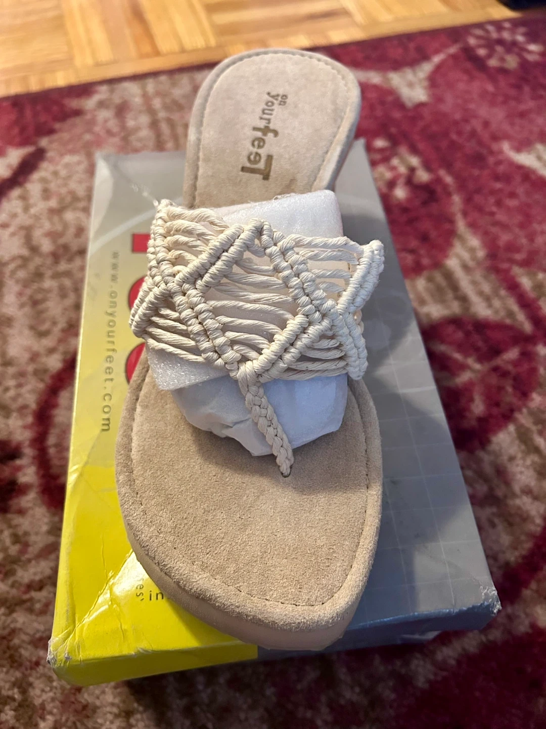 Brand new On Your Feet Beige Woven Strap Heeled Sandals Size 8.5